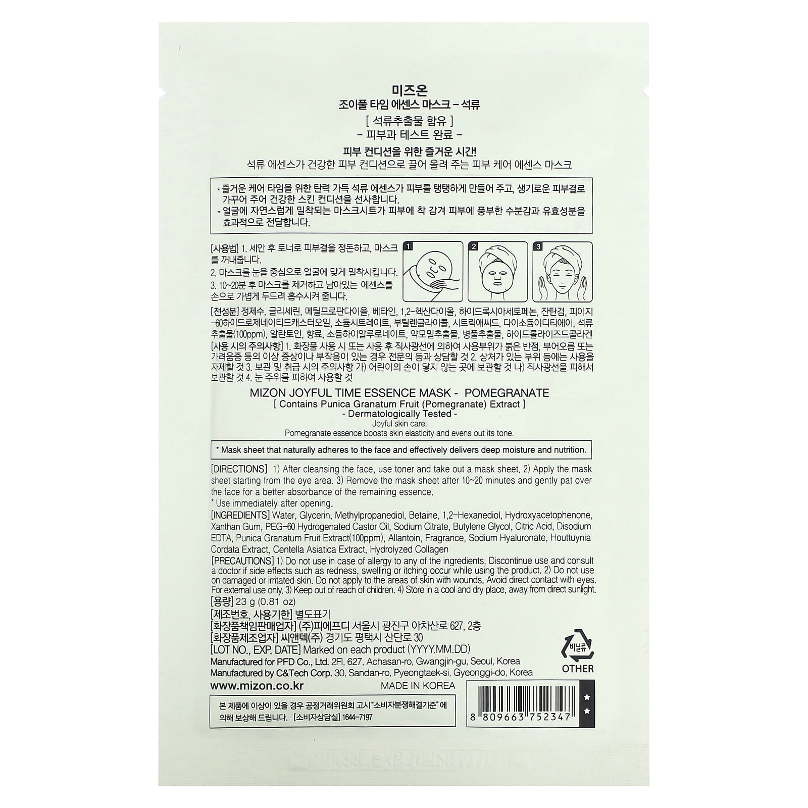 Вода, глицерин, метилпропандиол, бетаин, 1,2-гександиол, гидроксиацетофенон, ксантановая камедь, ПЭГ-60 гидрогенизированное касторовое масло, цитрат натрия, бутиленгликоль, лимонная кислота, двунатриевая ЭДТК, экстракт плодов граната (Punica granatum) (100 част./млн), аллантоин, отдушка, гиалуронат натрия, экстракт хауттюйнии (Houttuynia cordata), экстракт готу колы (Centella asiatica), гидролизованный коллаген