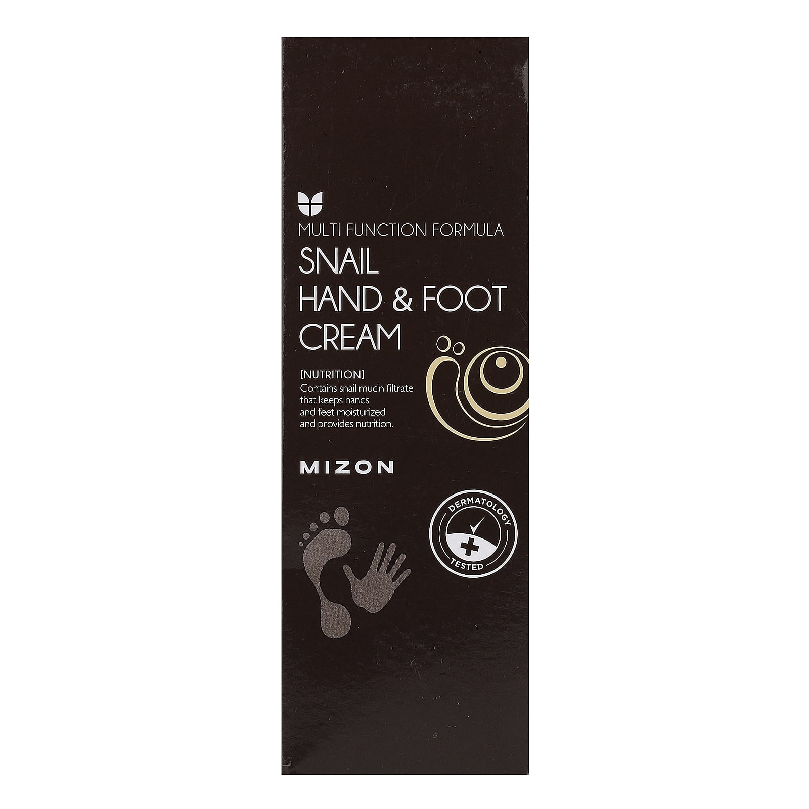 Содержит фильтрат муцина улитки, который увлажняет и обеспечивает питание рук и ног.