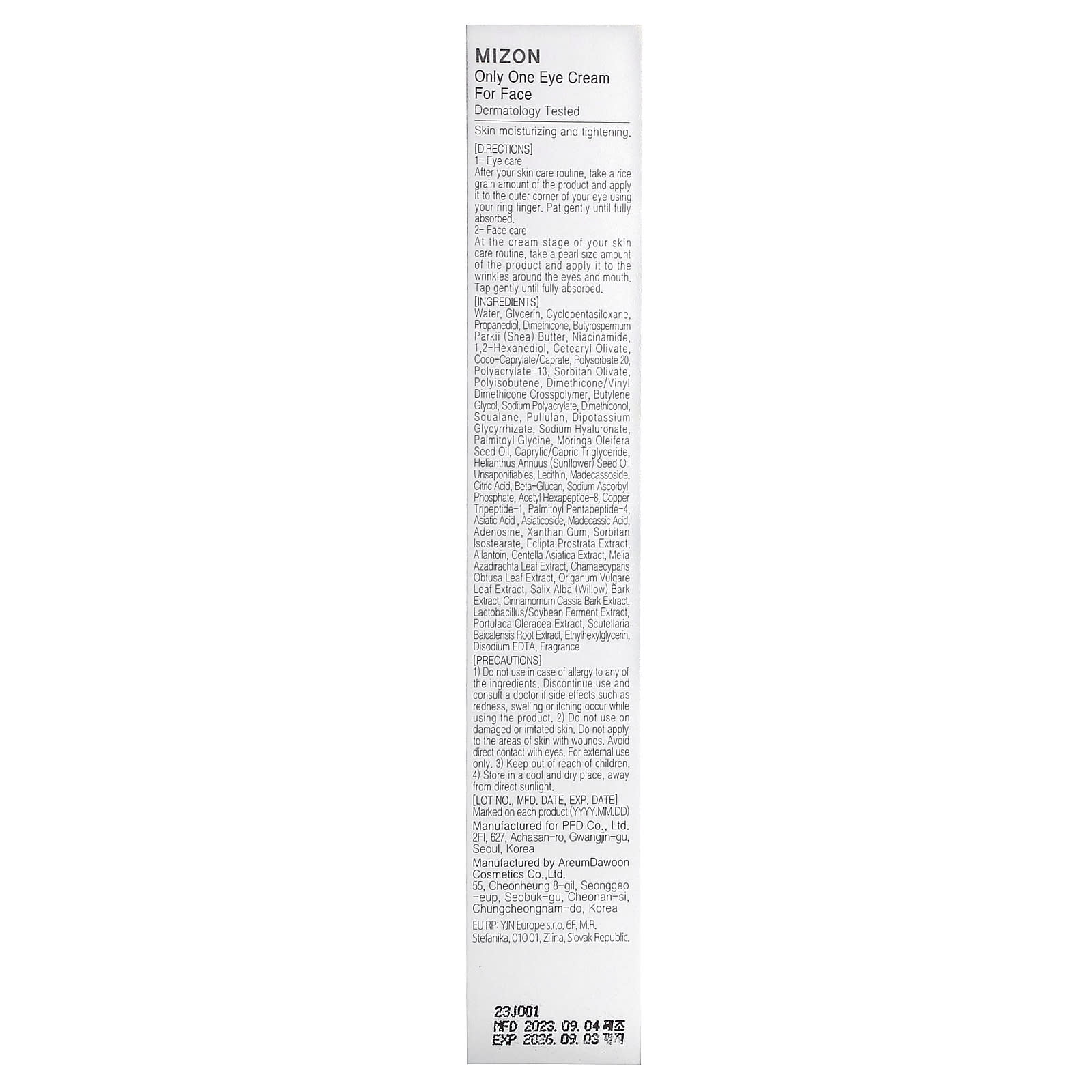 Вода, глицерин, циклопентасилоксан, пропандиол, диметикон, масло ши (Butyrospermum parkii), никотинамид, 1,2-гександиол, цетеарил оливат, коко-каприлат/капрат, полисорбат 20, полиакрилат-13, сорбитан оливат, полиизобутен, диметикон/винил диметикон кроссполимер, бутиленгликоль, полиакрилат натрия, диметиконол, сквалан, пуллулан, дикалия глицирризат, гиалуронат натрия, пальмитоил глицин, масло из семян моринги масличной (Moringa oleifera), каприловый/каприновый триглицерид, неомыляемые вещества подсолнечного масла (Helianthus annuus), лецитин, мадекассосид, лимонная кислота, бета-глюкан, аскорбил фосфат натрия, ацетил гексапептид-8, трипептид меди-1, пальмитоил пентапептид-4, азиатиковая кислота , азиатикозид, мадекассовая кислота, аденозин, ксантановая камедь, сорбитан изостеарат, экстракт эклипты простертой (Eclipta prostrata), аллантоин, экстракт готу колы (Centella asiatica), экстракт листьев дерева ним (Melia azadirachta), экстракт листьев кипарисовика (Chamaecyparis obtusa), экстракт листьев орегано (Origanum vulgare), экстракт коры ивы (Salix alba), экстракт коры кассии (Cinnamomum cassia), ферментированный экстракт лактобактерии/соевых бобов, экстракт портулака огородного (Portulaca oleracea), экстракт корня шлемника (Scutellaria baicalensis), этилгексилглицерин, двунатриевая ЭДТК, отдушка.