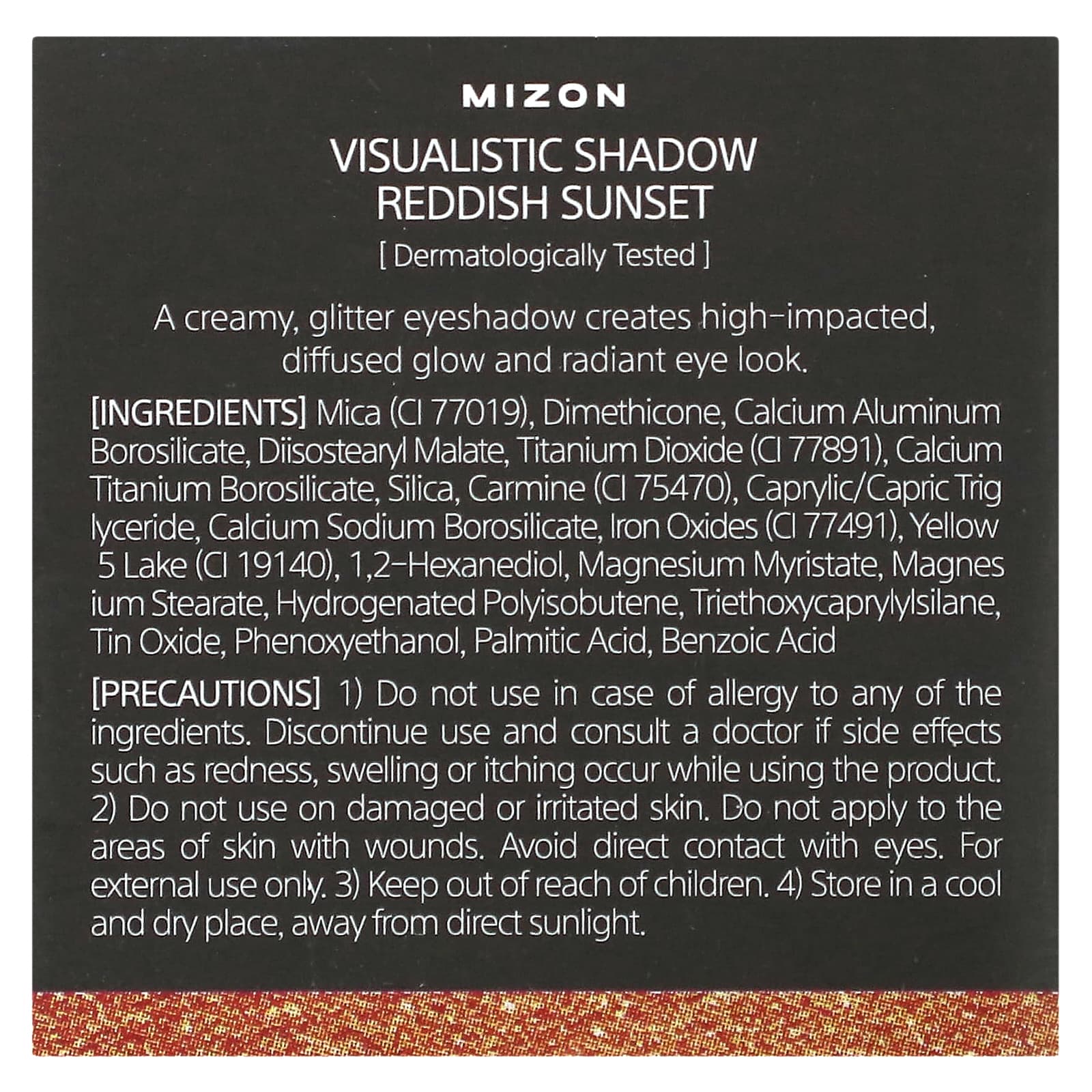 слюду (CI 77019), диметикон, кальций алюминий боросиликат, диизостеарил малат, диоксид титана (CI 77891), боросиликат кальция и титана, диоксид кремния, кармин (CI 75470), каприловый/каприновый триглицерид, кальций натрий боросиликат, оксиды железа (CI 77491), краситель желтый 5 лак (CI 19140), 1,2-гександиол, миристат магния, стеарат магния, гидрогенизированный полиизобутен, триэтоксикаприлилсилан, оксид олова, феноксиэтанол, пальмитиновая кислота, бензойная кислота.