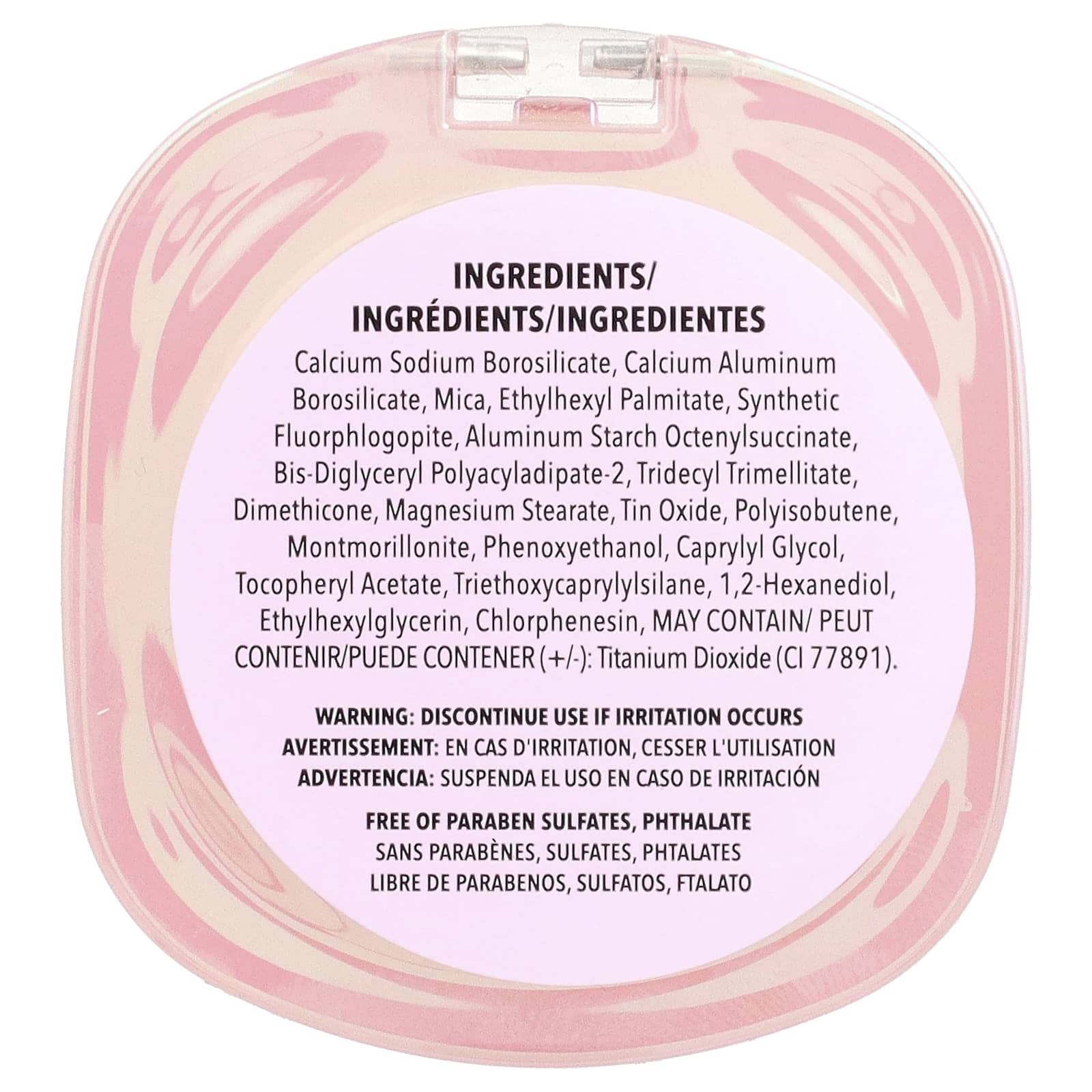 кальция натрий боросиликат, кальций алюминий боросиликат, слюда, этилгексил пальмитат, синтетический фторфлогопит, алюминия крахмал октенилсукцинат, бис-диглицерил полиациладипат-2, тридецил тримеллитат, диметикон, стеарат магния, оксид олова, полиизобутен, монтмориллонит, феноксиэтанол, каприлилгликоль, токоферилацетат, триэтоксикаприлилсилан, 1,2-гександиол, этилгексилглицерин, хлорфенезин. Может содержать (+/-): диоксид титана (CI 77891).