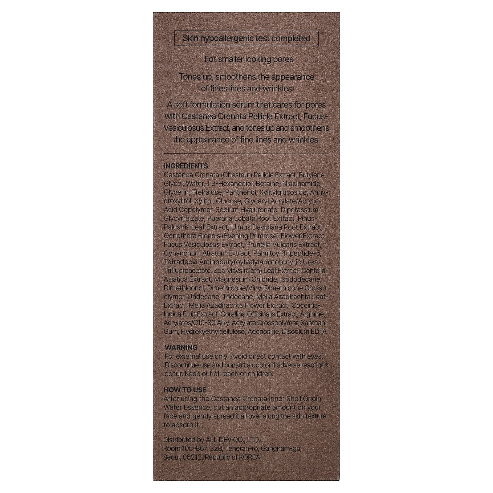 После использования водной эссенции внутренней ракушки Castanea Crenata нанесите необходимое количество на лицо и аккуратно распределите ее по текстуре кожи до полного впитывания.