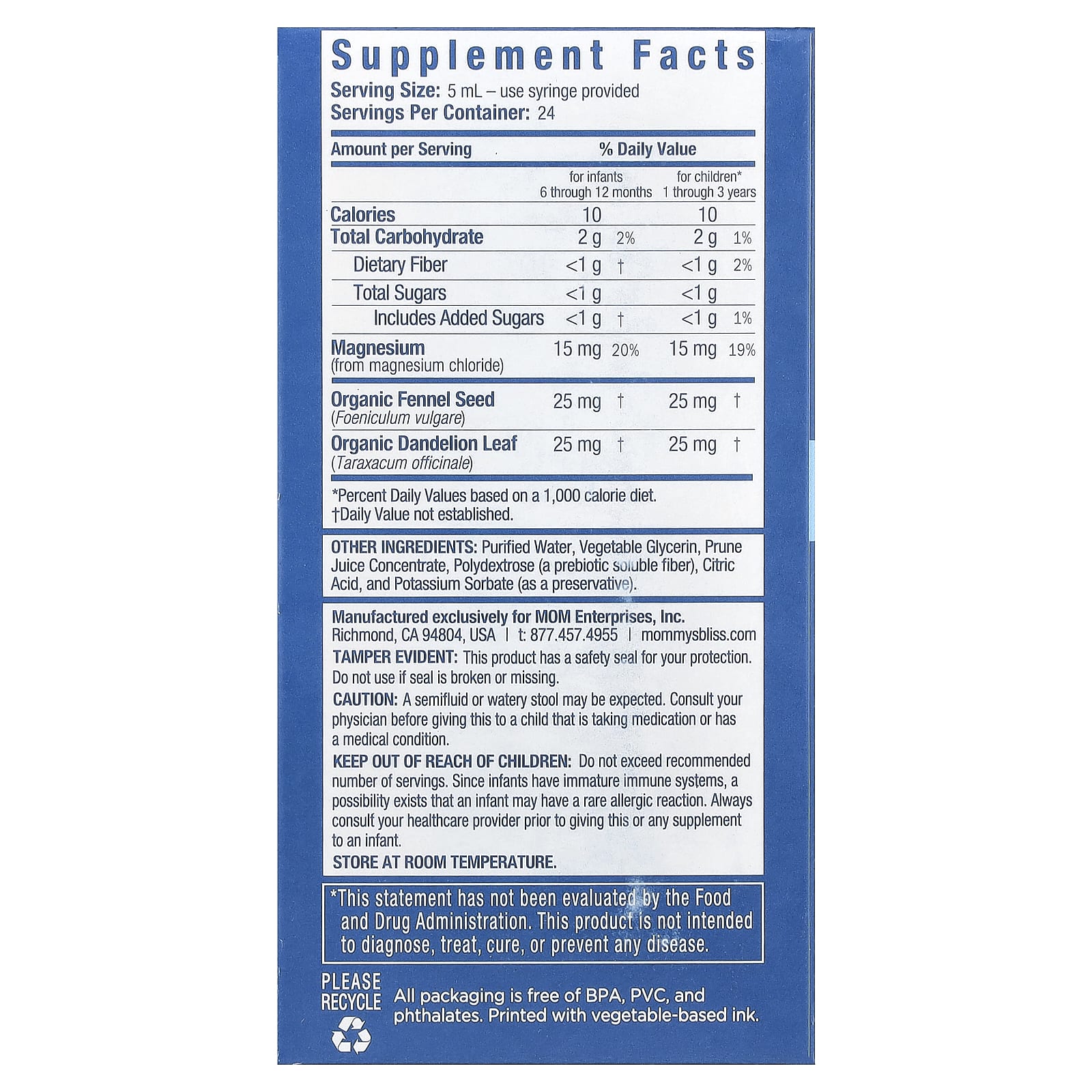 Хранить в недоступном для детей месте. Не превышать рекомендуемое количество приёмов. Поскольку у младенцев незрелая иммунная система, существует вероятность возникновения аллергической реакции. Всегда консультируйтесь со своим врачом перед тем, как давать эту или любую другую добавку младенцу.