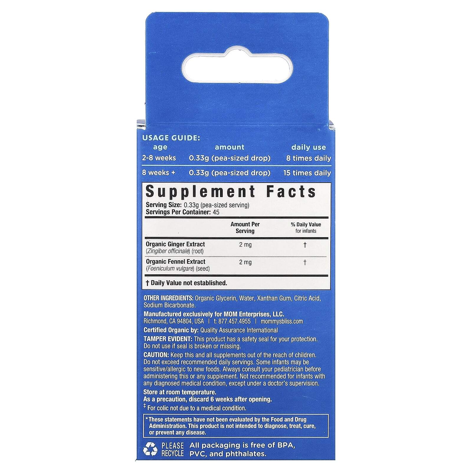 Тщательно вымойте руки перед использованием. Нанесите небольшое количество геля (размером с горошину) на чистую и сухую пустышку и дайте малышу медленно рассосать его. Также можно нанести гель на кончик пальца и распределить по внутренней стороне щеки. Не смешивать с детской смесью или грудным молоком. Не давать средство во время кормления. Не давать младенцам младше 2 недель или весом менее 3 кг (7 фунтов). Не превышать рекомендуемую суточную норму потребления.