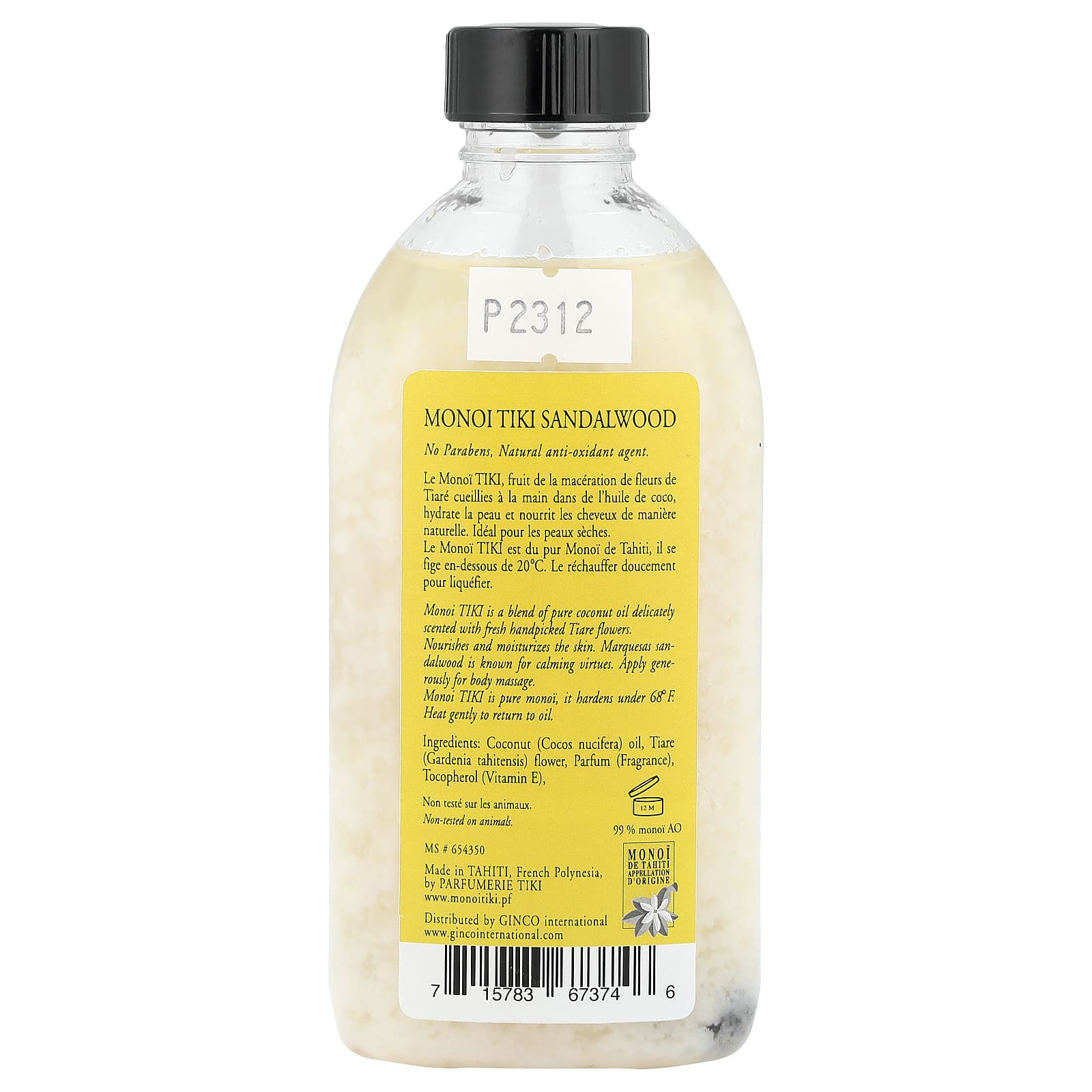 Monoi Tiki — это чистый монои, который твердеет при температуре 20 ºC (68 ºF).