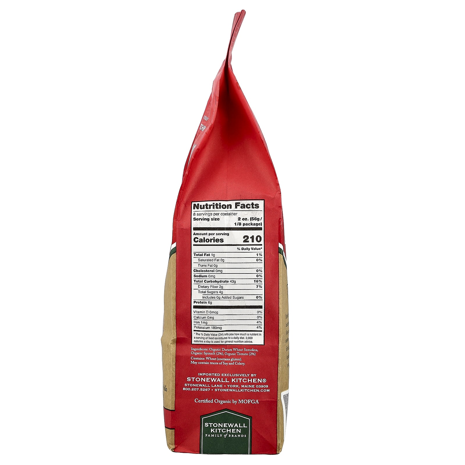 Манная крупа из органических твердых сортов пшеницы, органический шпинат (2%), органический томат (2%).