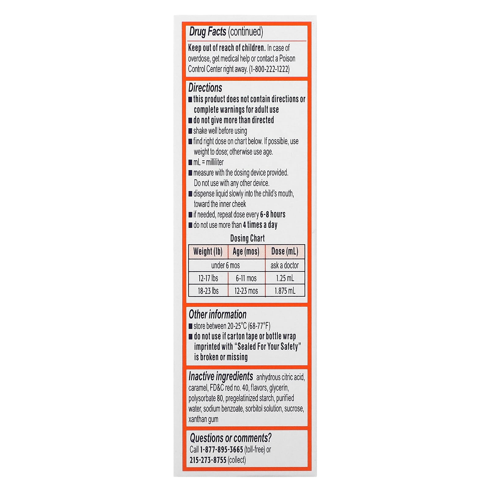 | Вспомогательные ингредиенты: Безводная лимонная кислота, карамель, краситель красный № FD&C 40, ароматизаторы, глицерин, полисорбат 80, прежелатинизированный крахмал, очищенная вода, бензоат натрия, раствор сорбитола, сахароза, ксантановая камедь. | |
