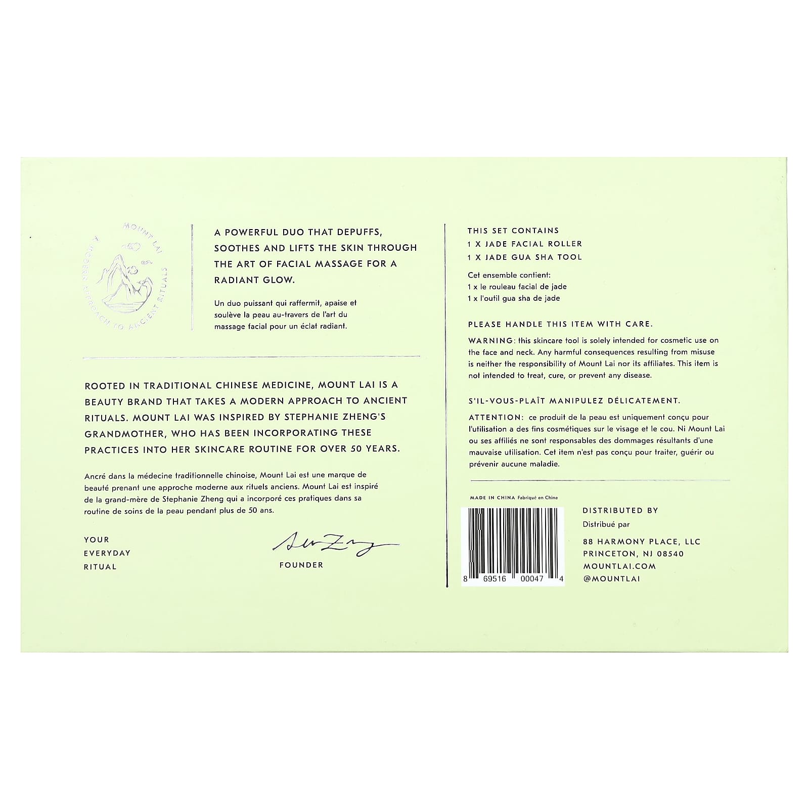 Mount Lai — это косметический бренд, основанный на традиционной китайской медицине, который применяет современный подход к древним ритуалам. Средство Mount Lai было вдохновлено бабушкой Стефани Чжэн, которая включает эти практики в свой ежедневный уход за кожей уже более 50 лет.