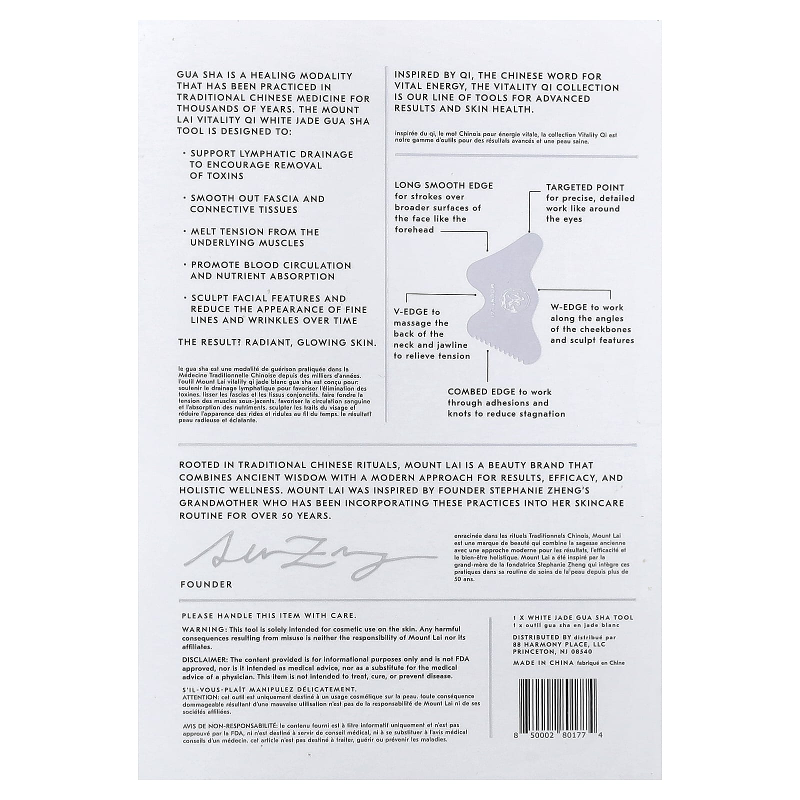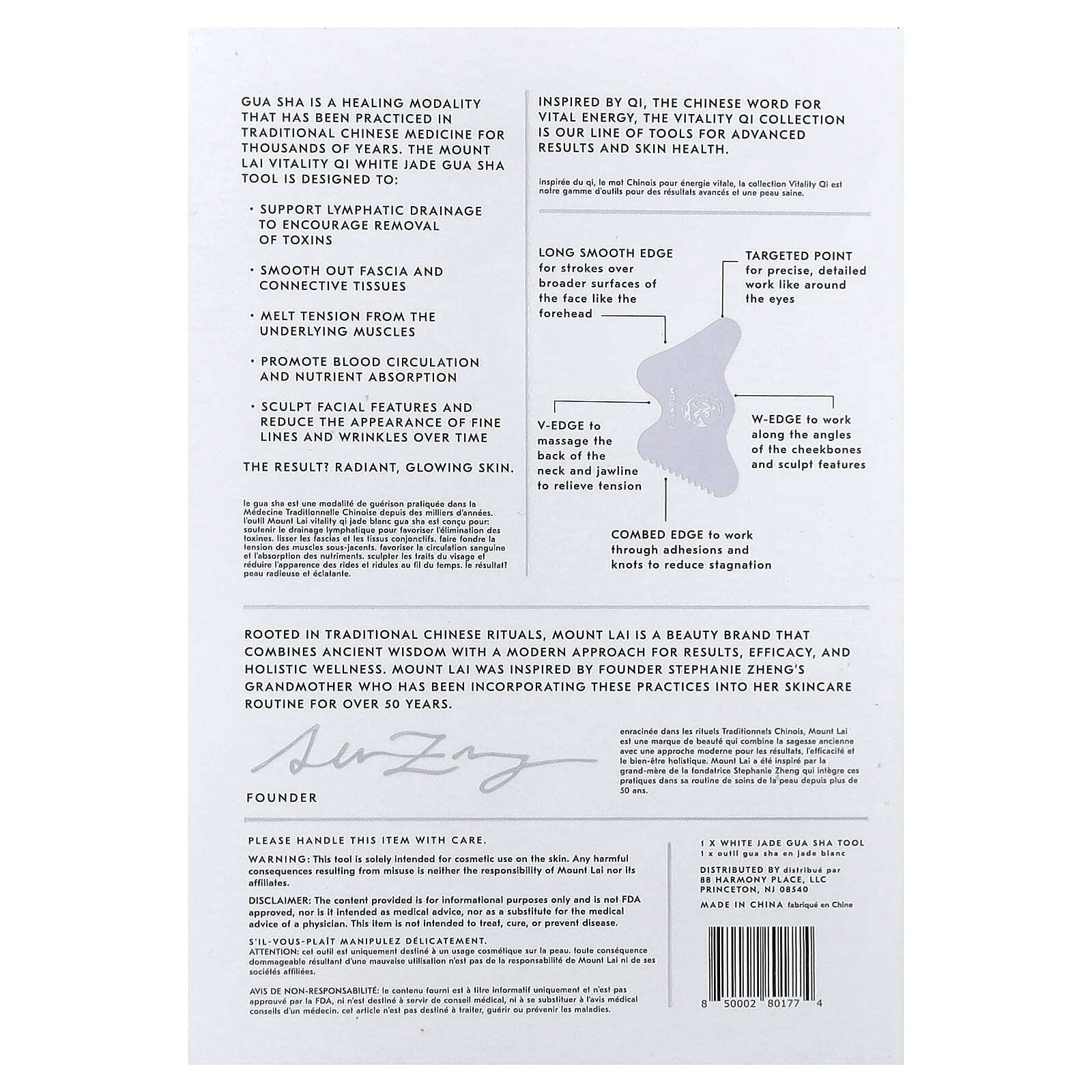 Гуа Ша — это лечебная практика, которая применяется в традиционной китайской медицине на протяжении тысячелетий. Массажер гуаша из белого нефрита Mount Lai Vitality Qi предназначен для: