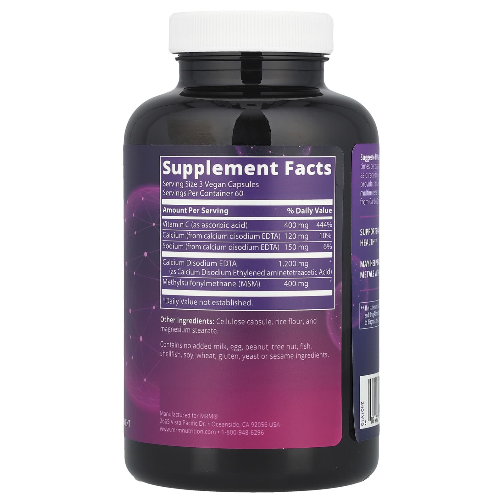 Cardio Chelate ™ с ЭДТК содержит комбинацию питательных веществ, поддерживающих здоровье сердечно-сосудистой системы. ЭДТК обладает антиоксидантными свойствами и способствует выведению из кровотока лишних отложений. Вместе с витамином С, МСМ и безводным бетаином эти питательные вещества помогают выводить свободные радикалы, поддерживая здоровье сердца.