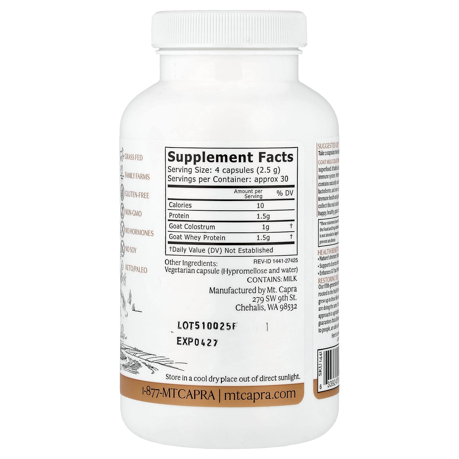 Молозиво из козьего молока — это оригинальный природный суперфуд. Формирует и укрепляет активную, здоровую иммунную систему. Молозиво, независимо от источника происхождения (из человеческого или козьего молока), содержит натуральные иммуноглобулины, лактоферрин и более 20 различных антител для здорового иммунитета и поддержки желудочно-кишечного тракта. Мы получаем это настоящее молозиво в течение 48 часов от довольных, здоровых коз на Западном побережья.