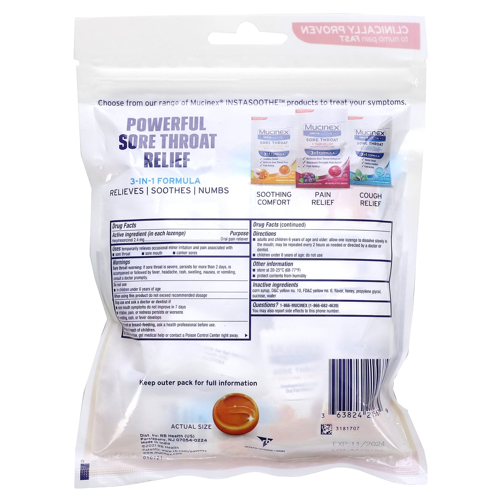 | Гексилрезорцин, 2,4 мг | Обезболивающее средство. |