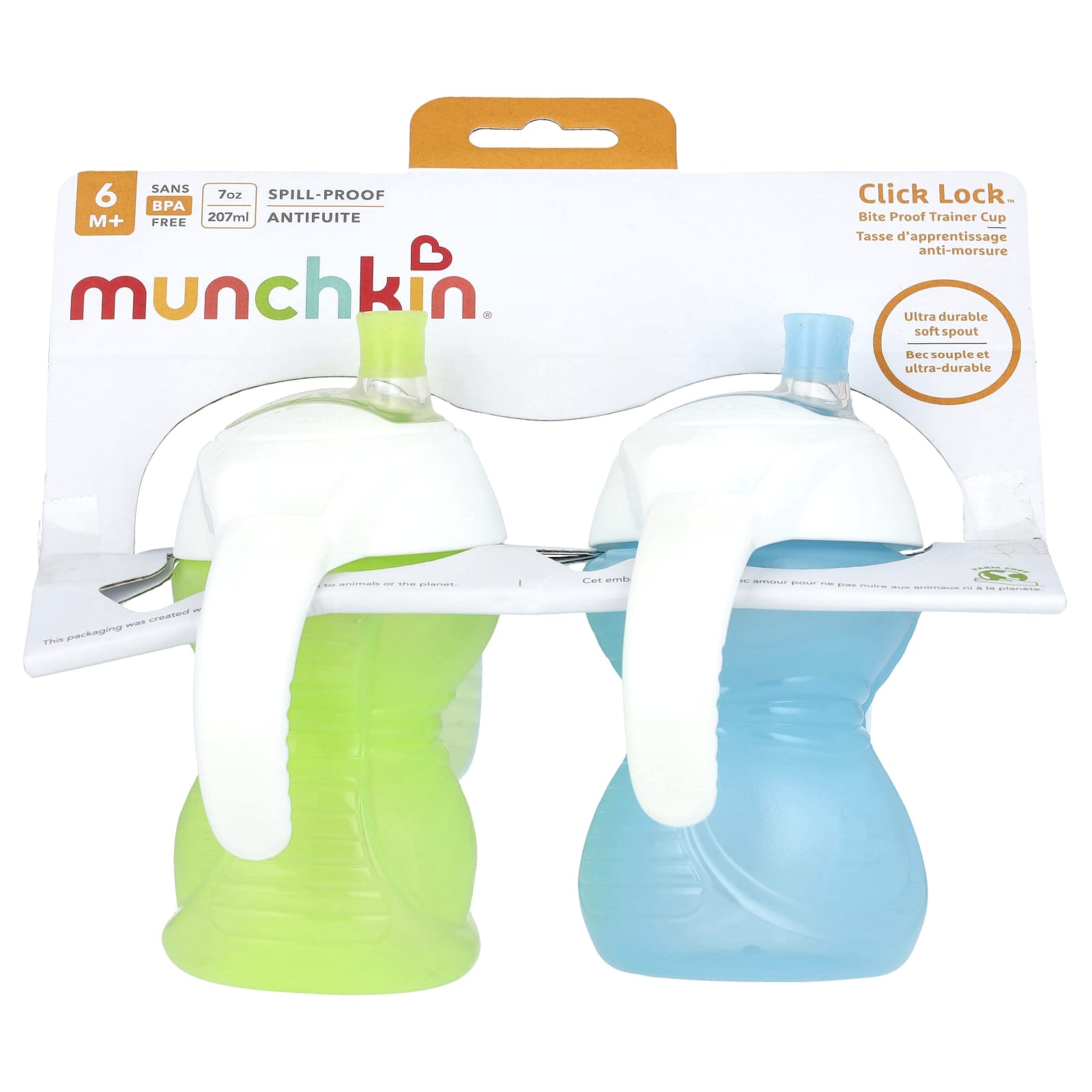 Munchkin, Click Lock ™, чашка для тренировок с защитой от прикусов, от 6 месяцев, светло-зеленый, голубой, 2 чашки по 207 мл (7 унций)