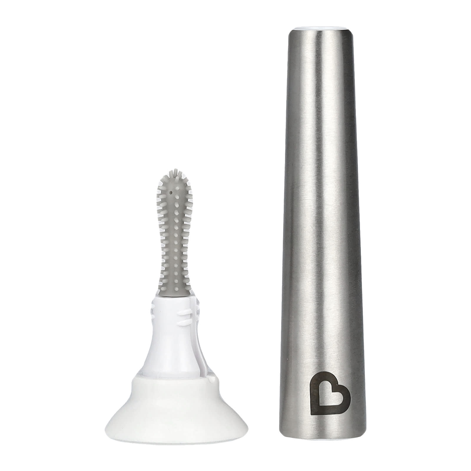 В каждый набор щеток для бутылочек из нержавеющей стали Shine ™ входит 1 ершик для чистки бутылочек и 1 сменная насадка. Если вам нужны дополнительные насадки для замены, вы просто приобретаете их отдельно, что менее расточительно, чем замена традиционных пластиковых щеток. Прочные и прочные нейлоновые щетинки устойчивы к грязи и бережно относятся к детской бутылочке! Труднодоступные углы не подходят для гибкой насадки-щетки, которая изгибается и легко проникает в каждую бутылку. Основание присоски позволяет просто поставить ее на столешницу, чтобы держать ее в вертикальном положении и вдали от микробов. Мягкая резиновая щетка для сосков удобно хранится внутри ручки для очистки сосков, деталей помпы, клапанов и других принадлежностей для маленьких бутылочек. Мускулистость и красота гарантированно «закалят» ваше сердце!