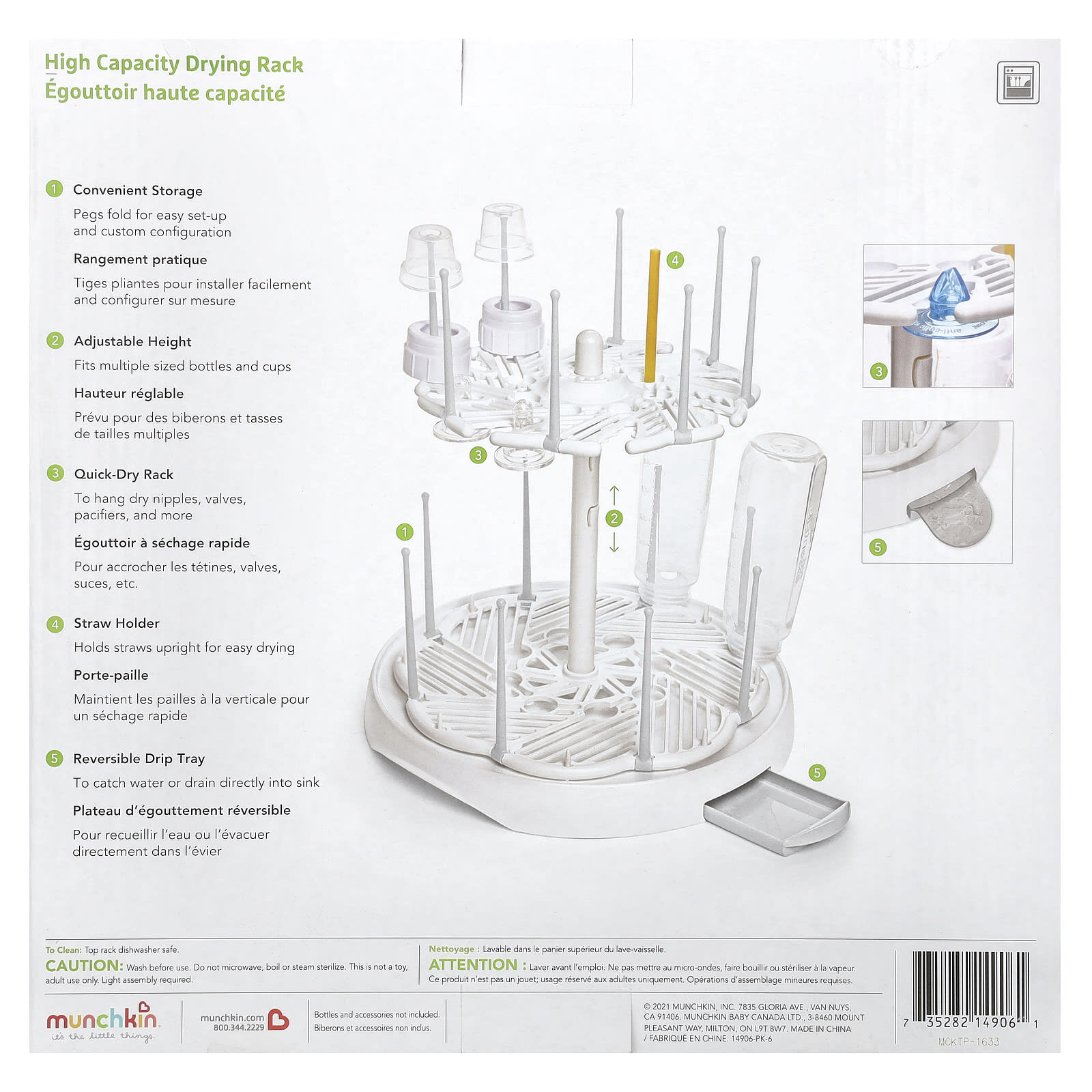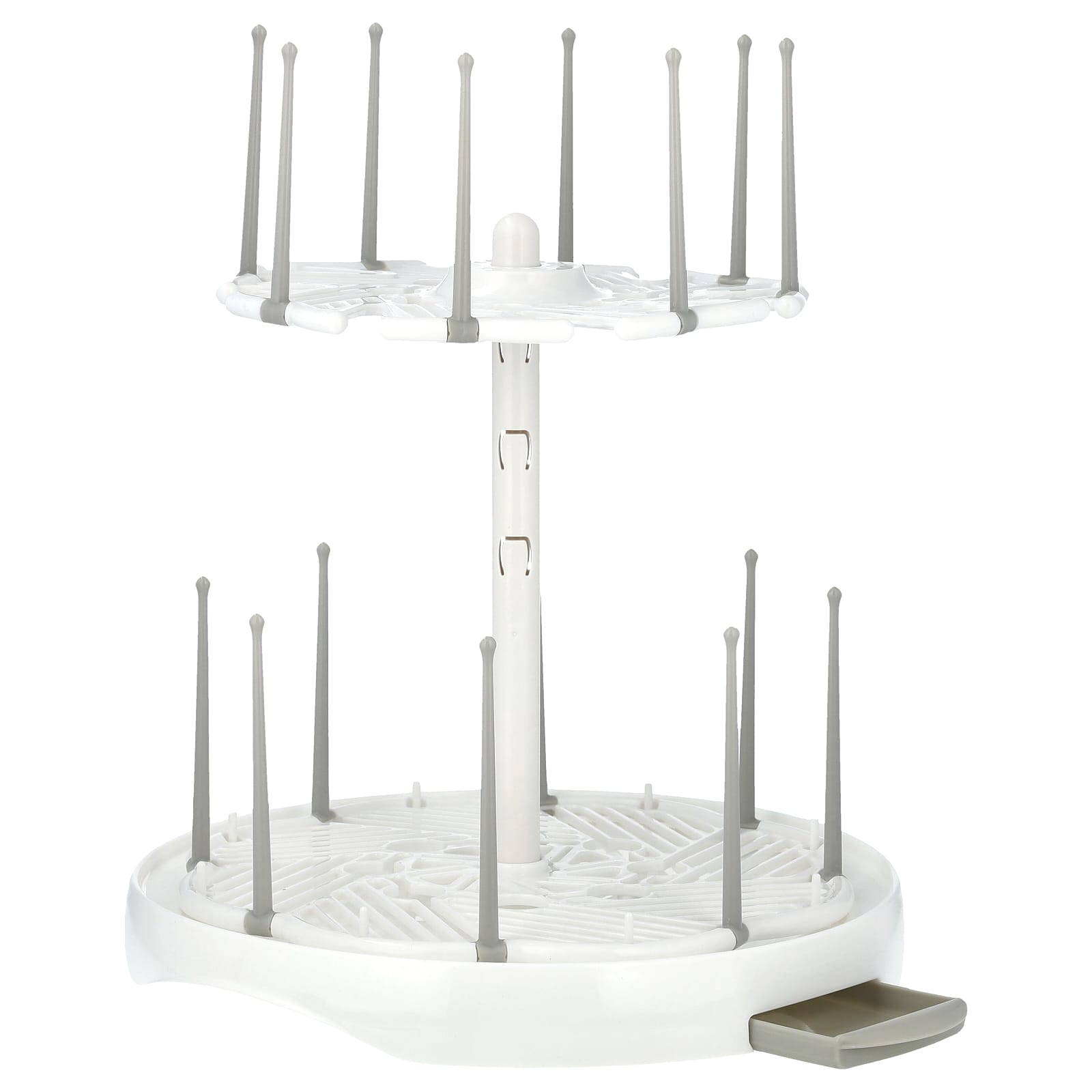 Полотенце никогда не доходит до дна только что вымытых бутылок и чашек, но давайте посмотрим правде в глаза, ничто не работает так же, как сушка на воздухе. Стеллаж для сушки большой емкости Munchkin имеет два яруса и достаточно места для одновременной загрузки до 16 бутылок, что позволяет навсегда оставить это полотенце. Удобная двухъярусная конструкция позволяет удвоить сушильную способность, сохраняя при этом аккуратную и удобную. Вращайте лотки на 360 градусов, чтобы легко загружать и выгружать даже самые маленькие части бутылок. Подвижные штифты даже складываются для удобства хранения и могут быть размещены на противнях в любом месте, выбрав удобное для вас расстояние. Попробуйте эту сушильную стойку, ведь мыть бутылки с ней просто невозможно!