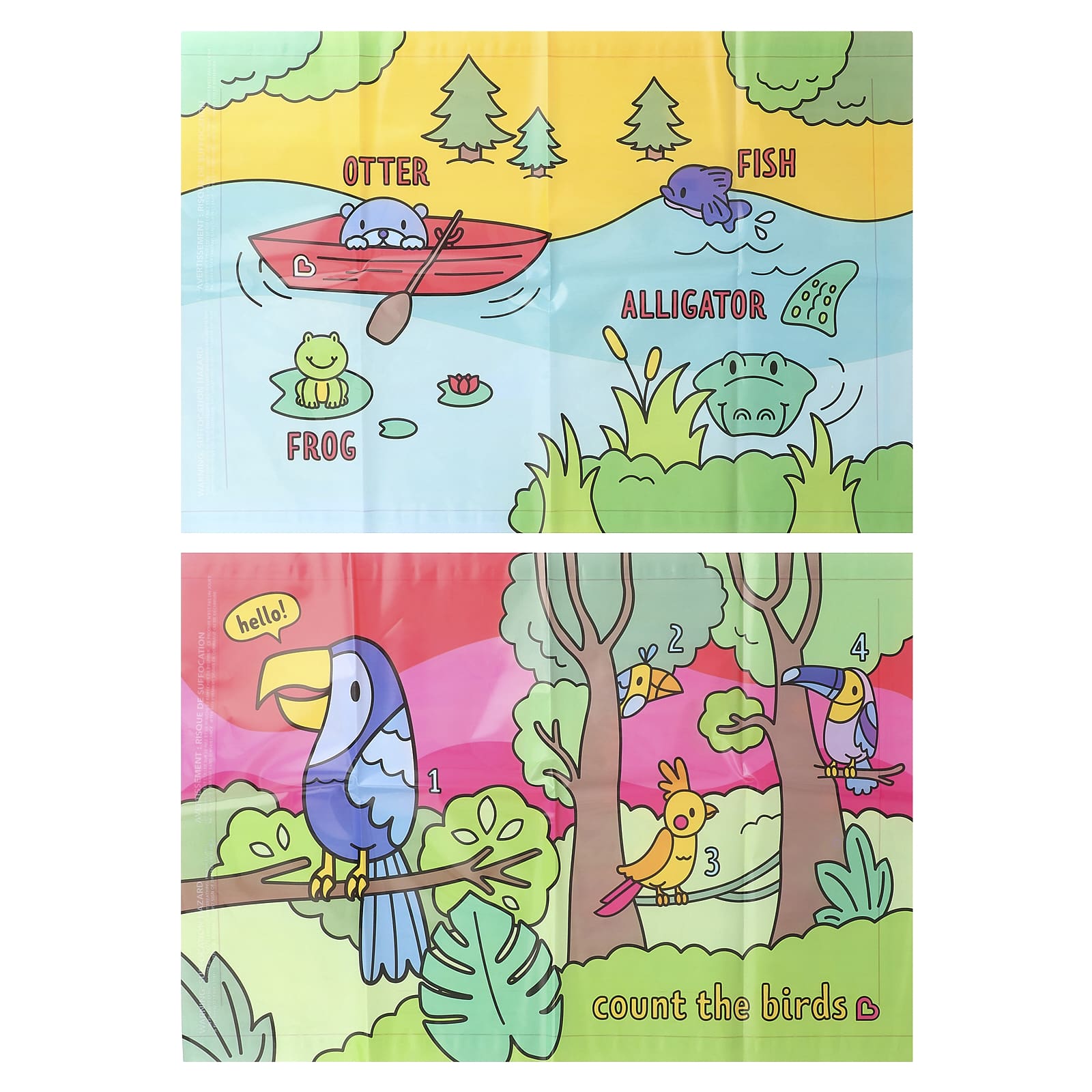 Тонкая пленка может прилипнуть к носу и рту и помешать дыханию. Взрослым следует прикрепить к поверхности. Продукт не игрушка. Не оставлять ребенка без присмотра. Утилизируйте при первых признаках износа или повреждения.