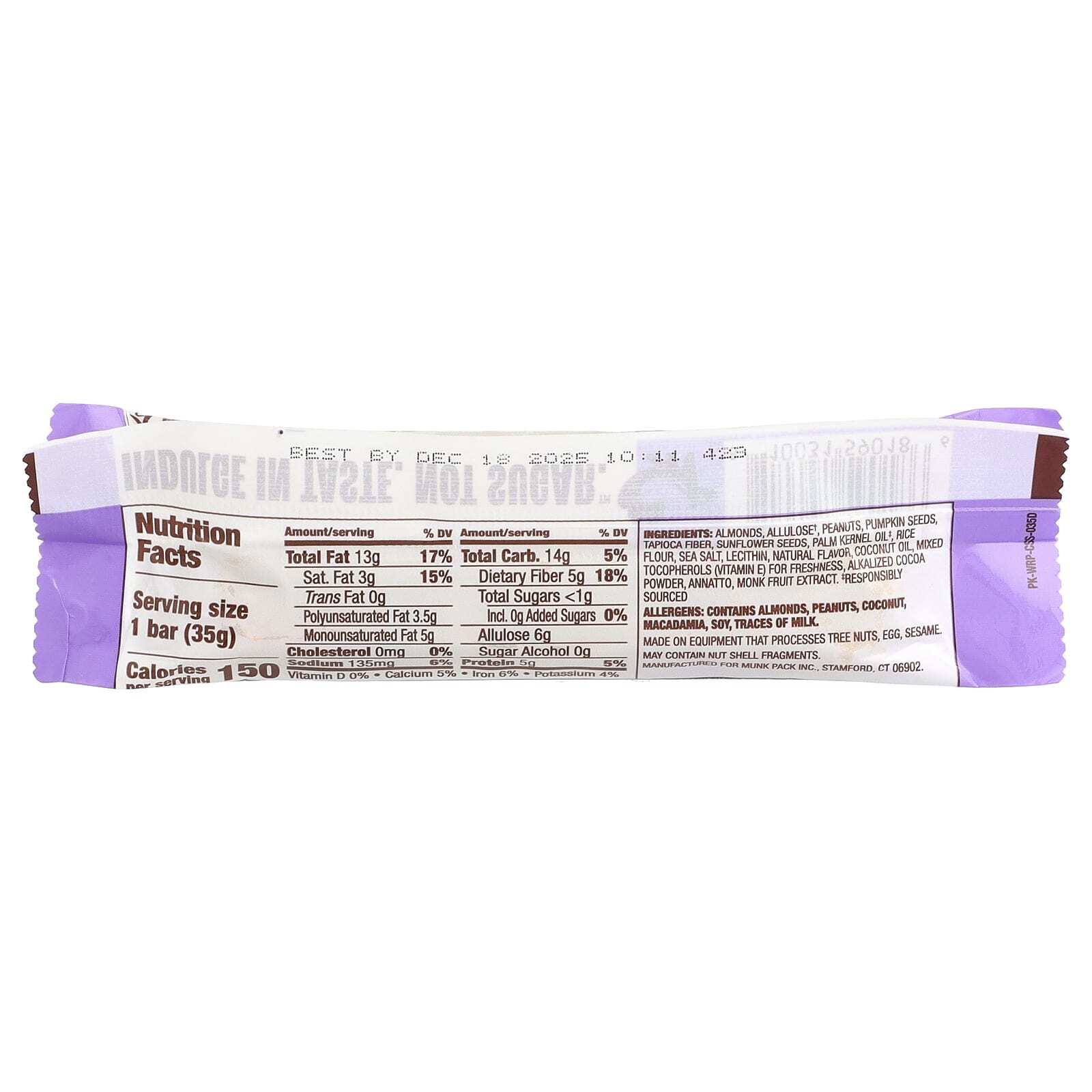 Миндаль, аллюлоза†, арахиса, семена тыквы, тапиоковая клетчатка, семена подсолнечника, пальмоядровое масло‡, рисовая мука, морская соль, лецитин, натуральный ароматизатор, кокосовое масло, смешанные токоферолы (витамин E) для свежести, обработанный щёлочью какао-порошок, аннато, экстракт архата.