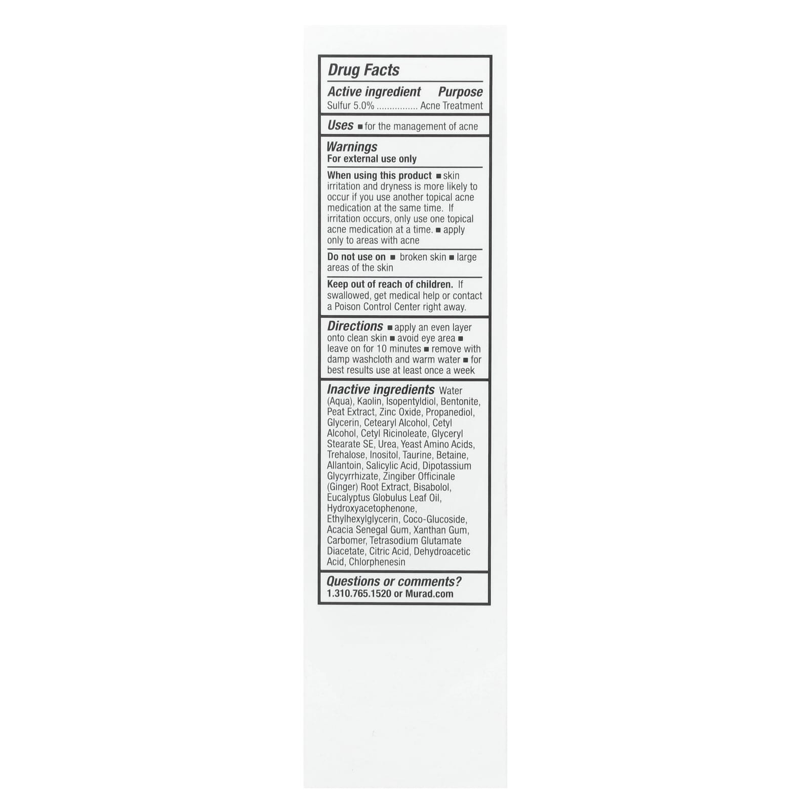 | вода (аква), каолин, изопентилдиол, бентонит, экстракт торфа, оксид цинка, пропандиол, глицерин, цетеариловый спирт, цетиловый спирт, цетилрицинолеат, глицерил стеарат, мочевина, дрожжевые аминокислоты, трегалоза, инозитол, таурин, бетаин, аллантоин, салициловая кислота, глицирризат калия, экстракт корня имбиря (Zingiber officinale), бисаболол, масло листьев эвкалипта шаровидного (Eucalyptus globulus), гидроксиацетофенон, этилгексилглицерин, кокоглюкозид, камедь акации сенегальской, ксантановая камедь, карбомер, диацетат глутамата тетранатрия, лимонная кислота, дегидроуксусная кислота, хлорфенезин. | |