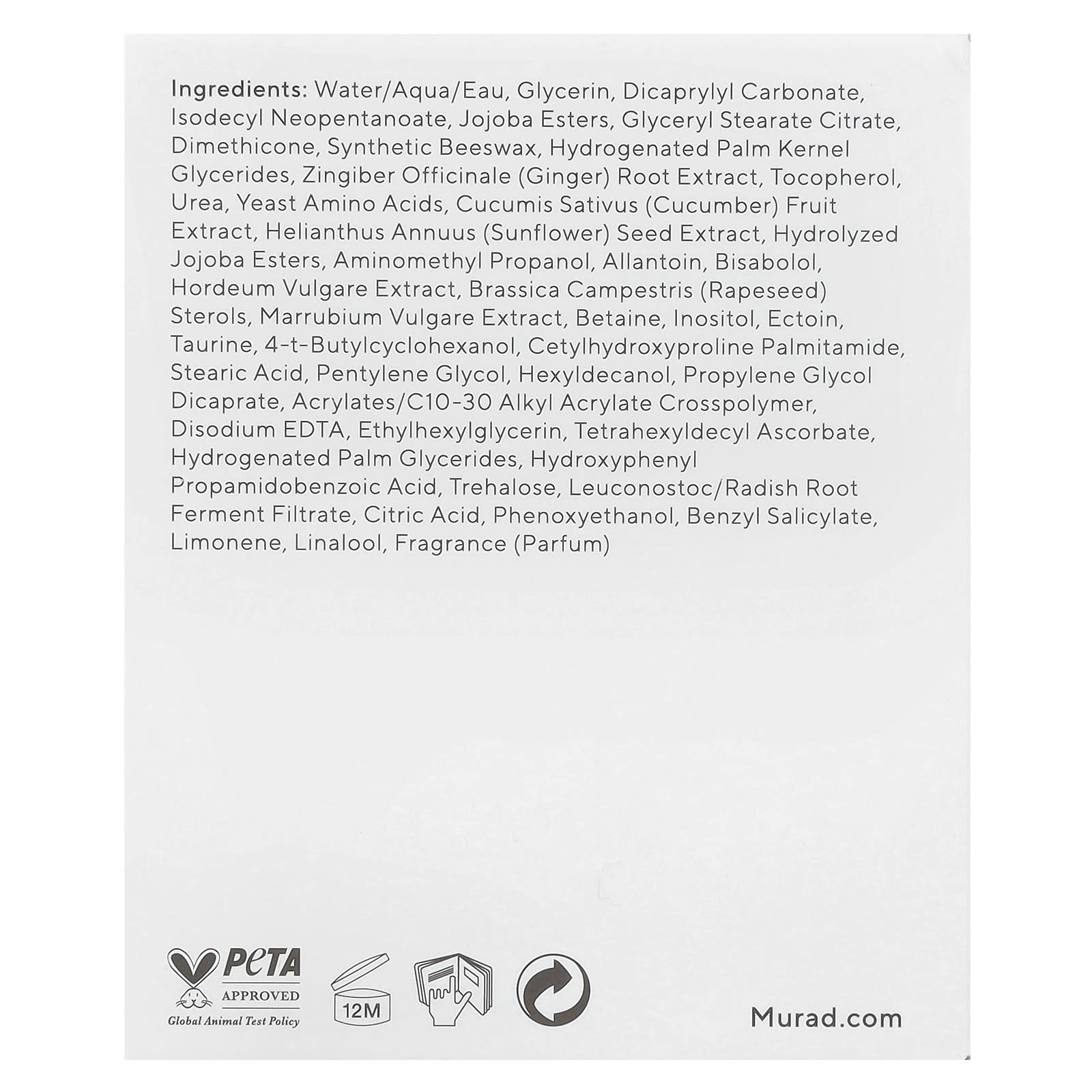 Вода, глицерин, дикаприлил карбонат, изодецилнеопентаноат, эфиры жожоба, глицерил стеарат цитрат, диметикон, синтетический воск, гидрогенизированные пальмоядровые глицериды, экстракт корня имбиря (Zingiber officinale), токоферол, мочевина, дрожжевые аминокислоты, экстракт плодов огурца (Cucumis sativus), экстракт семян подсолнечника (Helianthus annuus), гидролизованные эфиры жожоба, аминометил пропанол, аллантоин, бисаболол, экстракт ячменя (Hordeum vulgare), рапсовые стеролы (Brassica campestris), экстракт шандры (Marrubium vulgare), бетаин, инозитол, эктоин, таурин, 4-т-бутилциклогексанол, цетилгидроксипролин пальмитамид, стеариновая кислота, пентилен гликоль, гексилдеканол, пропиленгликоль дикапрат, акрилат/c10-30 алкил акрилат кроссполимер, двунатриевая ЭДТК, этилгексилглицерин, тетрагексилдецил аскорбат, гидрогенизированные пальмовые глицериды, гидроксифенил пропамидбензойная кислота, трегалоза, лейконосток/ферментированный фильтрат корня редиса, лимонная кислота, феноксиэтанол, бензилсалицилат, лимонен, линалоол, отдушка (парфюмерная композиция).