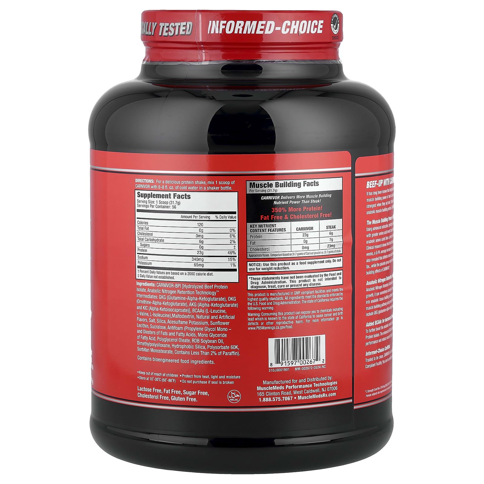 Давно известно, что бодибилдеры и силовые атлеты потребляют большое количество говядины для наращивания мышечной массы и увеличения силы. Польза говядины для наращивания мышечной массы неоспорима. Большинство бодибилдеров скажут вам, что самого большого роста мышечной массы и они чувствуют себя сильнее, употребляя говядину. Благодаря развитию усовершенствованного говяжьего протеина, полученного с помощью биоинженерии, компания MuscleMeds создала высокоанаболический протеин для наращивания мышечной массы. CARNIVOR не похож ни на одну другую существующую протеиновую добавку.