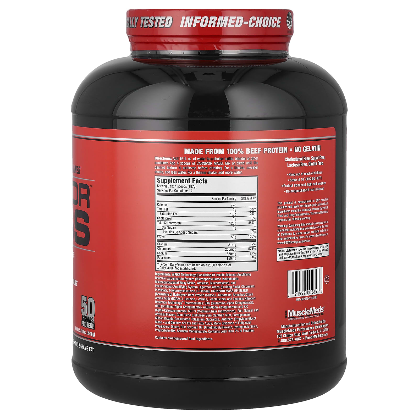 Дни наполнения вашего организма пустым жиром и большим количеством калорий остались в прошлом! Калории не стимулируют рост мышц, это происходит в результате анаболизма! Высокоскоростная доставка макроэлементов с почти идеальной оптимизацией инсулина отличает CARNIVOR MASS от других добавок. Исследования показывают, что быстрые белки в сочетании с повышенным уровнем инсулина обеспечивают взрывной анаболизм (рост) мышц во время тренировок с отягощениями*. В программе CARNIVOR MASS это возможно благодаря всемирно известному изоляту говяжьего протеина CARNIVOR от MuscleMeds, действующему в сочетании с iSpike, препаратом двойного высвобождения инсулина. технологии усиления сигнала инсулина, которой нет ни в одной другой добавке.