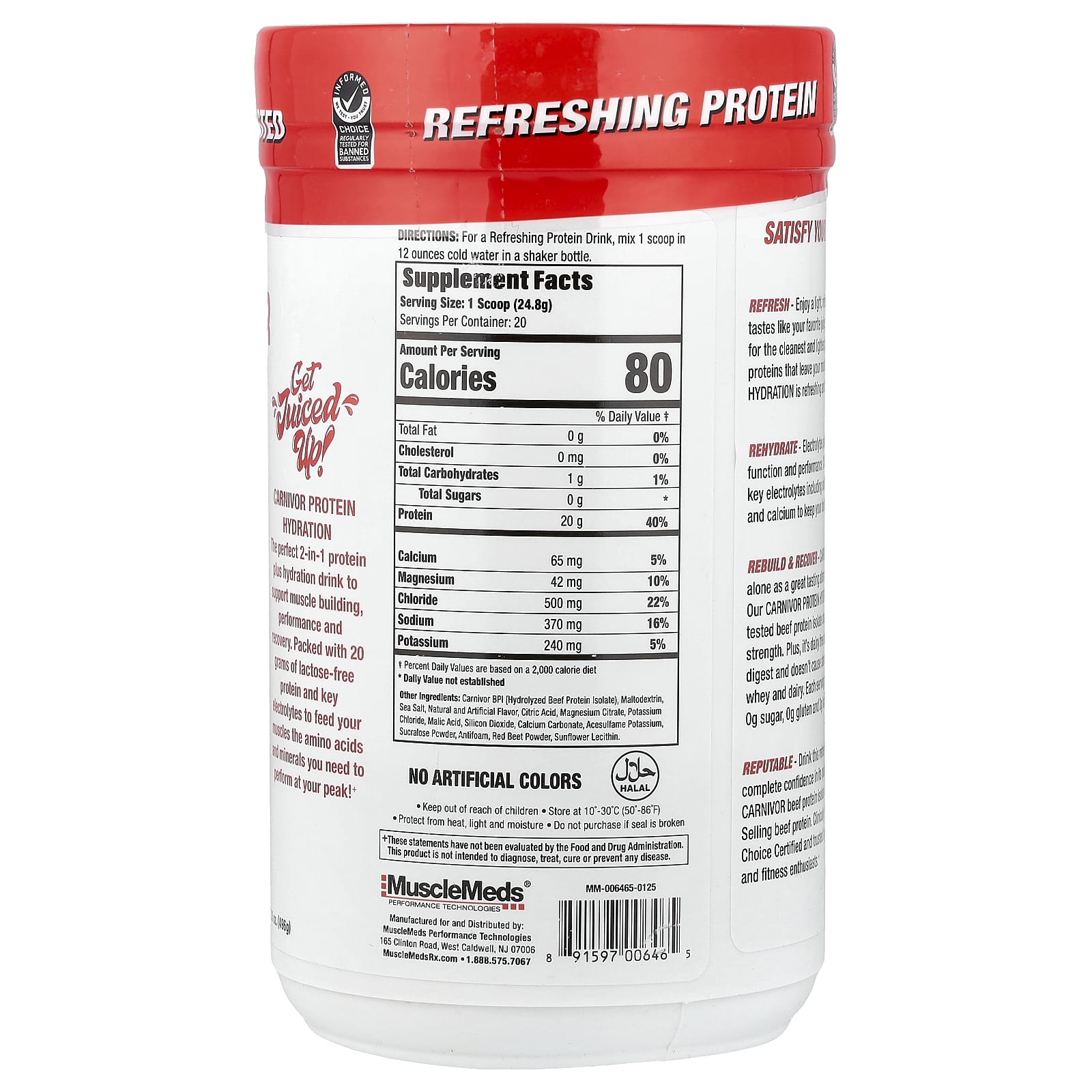 Восстановление : CARNIVOR PROTEIN Hydration — это отличная вкусная альтернатива сыворотке и другим протеинам. Наш продукт CARNIVOR Protein Hydration изготовлен из клинически протестированного изолята говяжьего белка, который способствует росту сухой мышечной массы и силы. Кроме того, он не содержит молочных продуктов и лактозы, поэтому легче усваивается и не вызывает дискомфорта в желудке или вздутия живота, как сыворотка и молочные продукты. Каждая порция содержит 20 г белка, а также 0 г жира, 0 г сахара, 0 г глютена и 0 г лактозы.