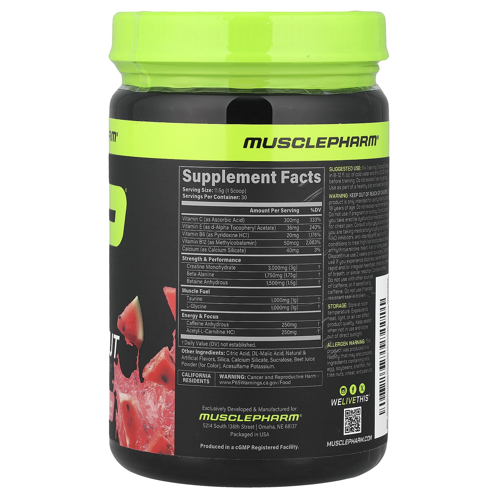 MusclePharm, Assault®, предтренировочный комплекс, со вкусом арбуза, 344 г (12,1 унции)