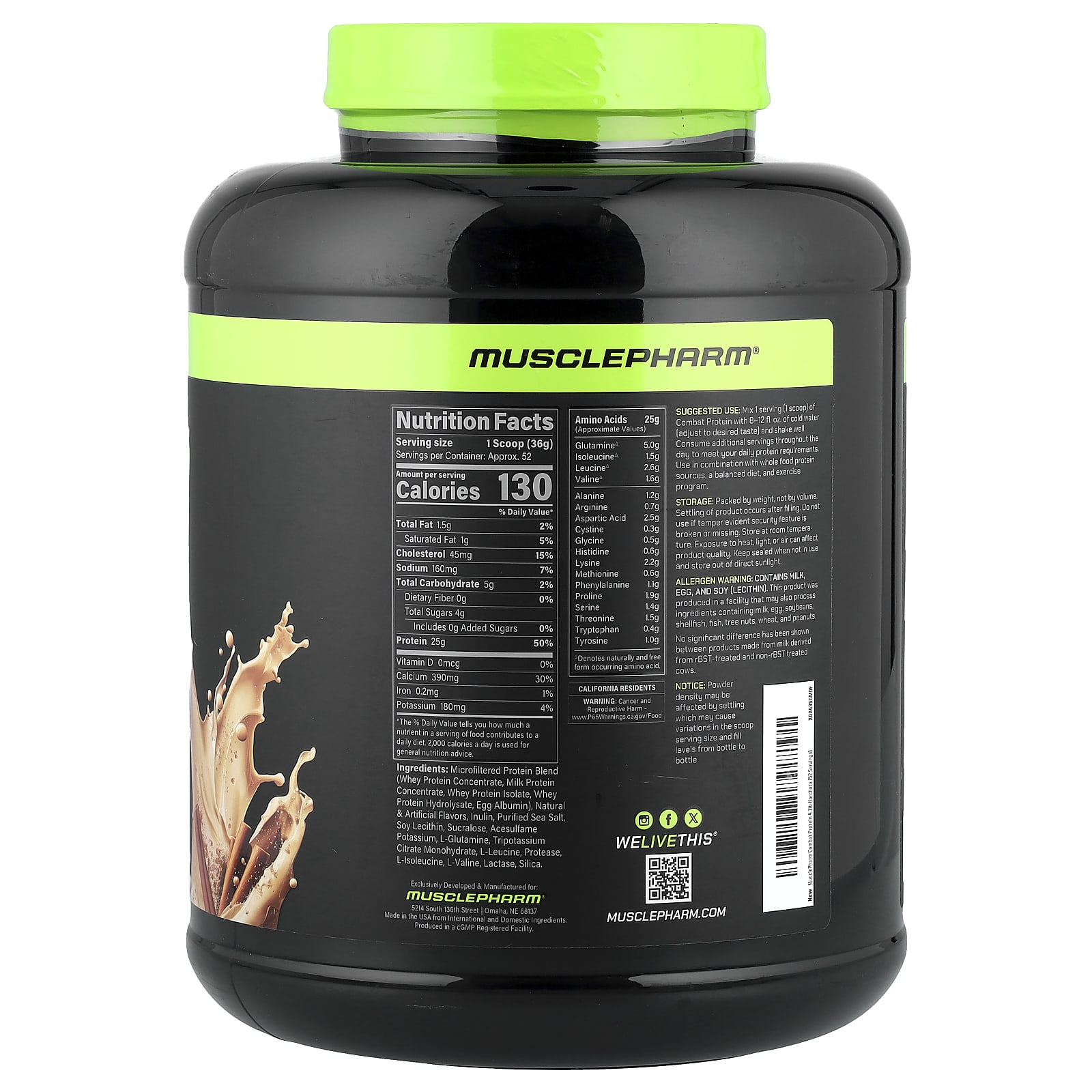 Combat Protein от MusclePharm протестирован на соответствие заявленному протеину и наличие запрещенных веществ в соответствии с рядом аналитических тестов и высококачественными стандартами качества продуктов, сертифицированных Informed Sport и Informed Protein. Такие продукты проходят строгий контроль качества, а также ежемесячное слепое тестирование проб, чтобы спортсмены и покупатели могли с уверенностью рекомендовать протеин для своих тренировок и приема пищевых добавок. Активное участие MusclePharm в исследованиях Informed Sport и Informed Protein обеспечивает качество продукции и позволяет покупателям быть уверенными в том, что они получают именно то, что ожидают от каждой порции. Вот почему миллионы людей доверяют MusclePharm.
