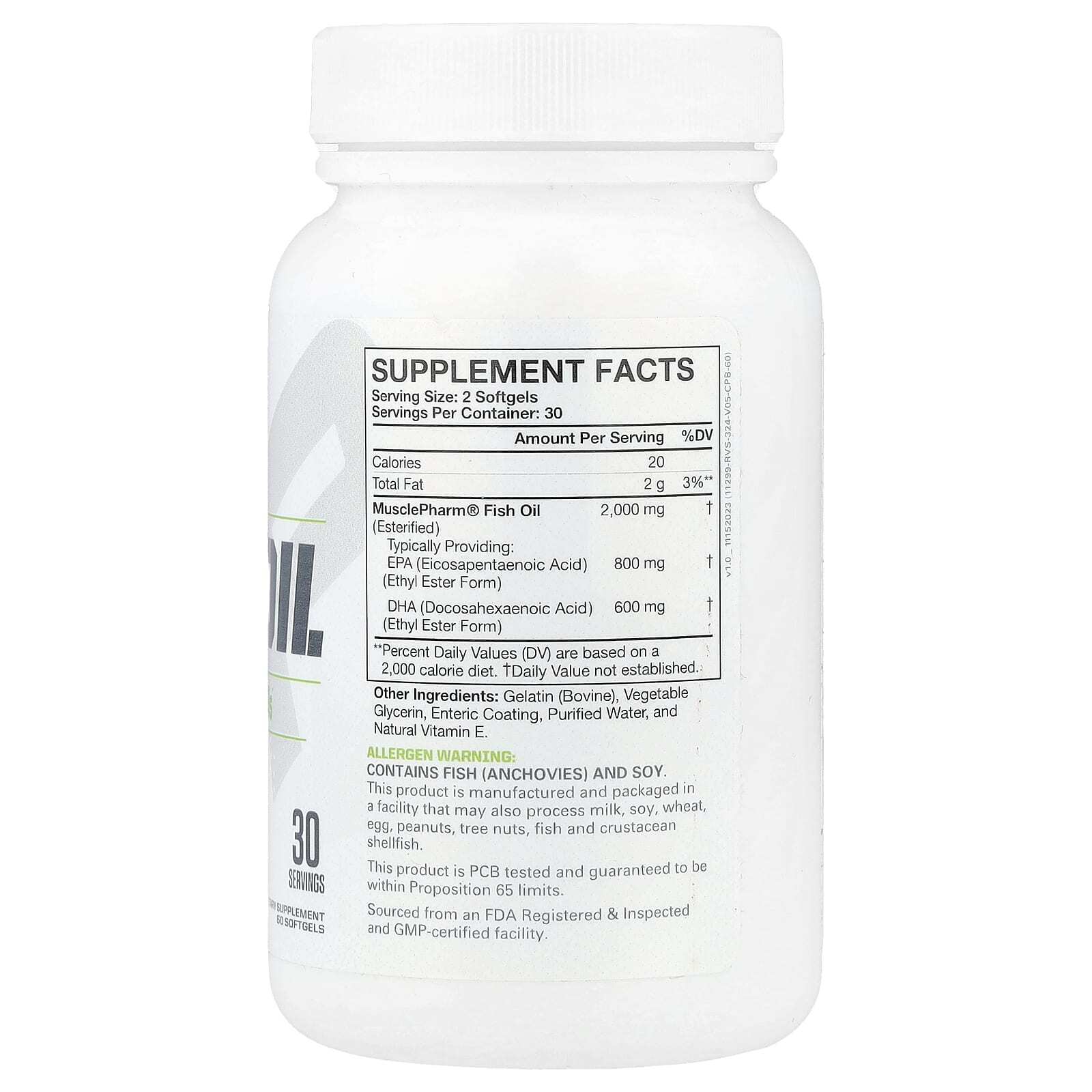 Рыбий жир MusclePharm® содержит 2000 мг рыбьего жира в 1 порции, который помогает поддерживать здоровье сердца, мозга, иммунной системы и суставов. Каждая порция этого элитного рыбьего жира с омега-3 содержит богатый источник жирных кислот омега-3 и обычно содержит 800 мг ЭПК и 600 мг ДГК (в виде этиловых эфиров ЭПК и ДГК). ваш шаг на пути к достижению ваших ежедневных целей в области здоровья и фитнеса.