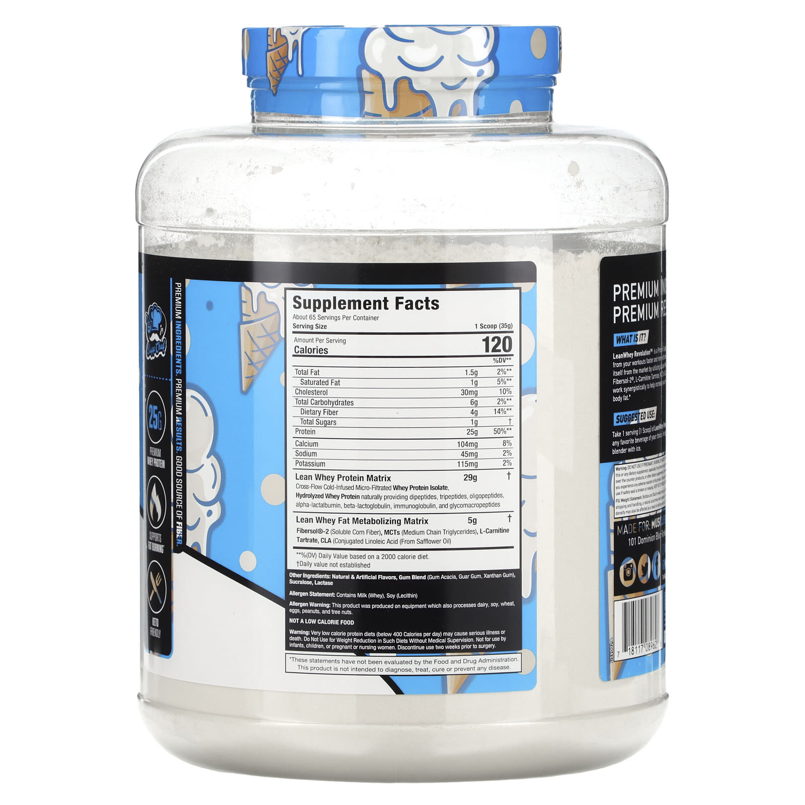 LeanWhey Revolution ™ - это протеиновая добавка, которая поможет вам быстрее и эффективнее восстановиться после тренировок. Lean Whey Revolution отличается от рынка за счет использования матрицы сухой мышечной массы. Эта матрица состоит из Fibersol-2®, L-карнитина тартрата, MCTS и CLA (конъюгированной линолевой кислоты), которые работают синергетически, повышая скорость метаболизма и способствуя сжиганию жира.