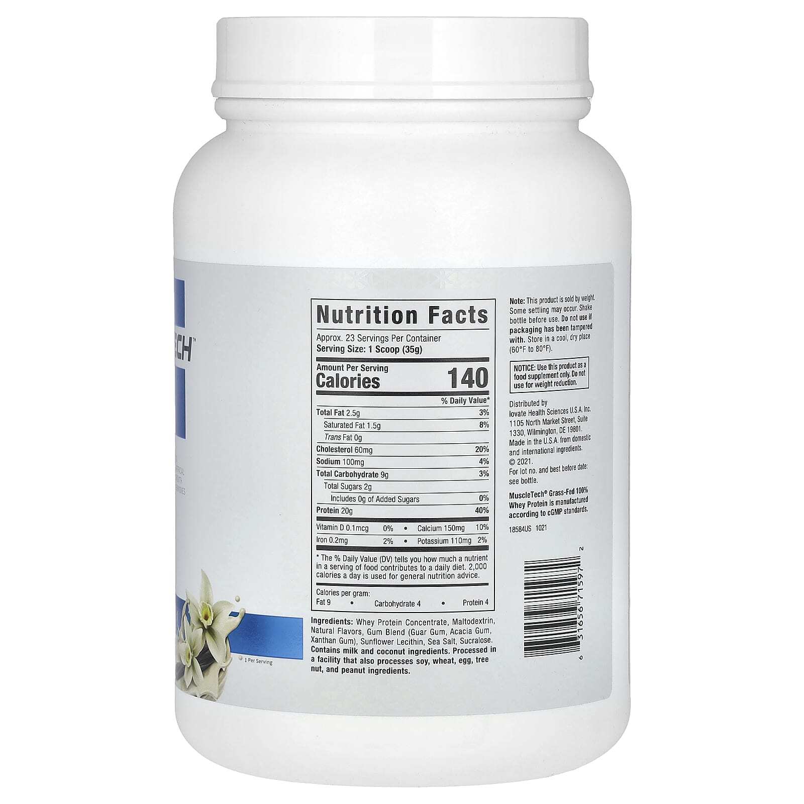 MuscleTech, 100% сывороточный протеин травяного откорма, ваниль, 816 г (1,8 фунта)