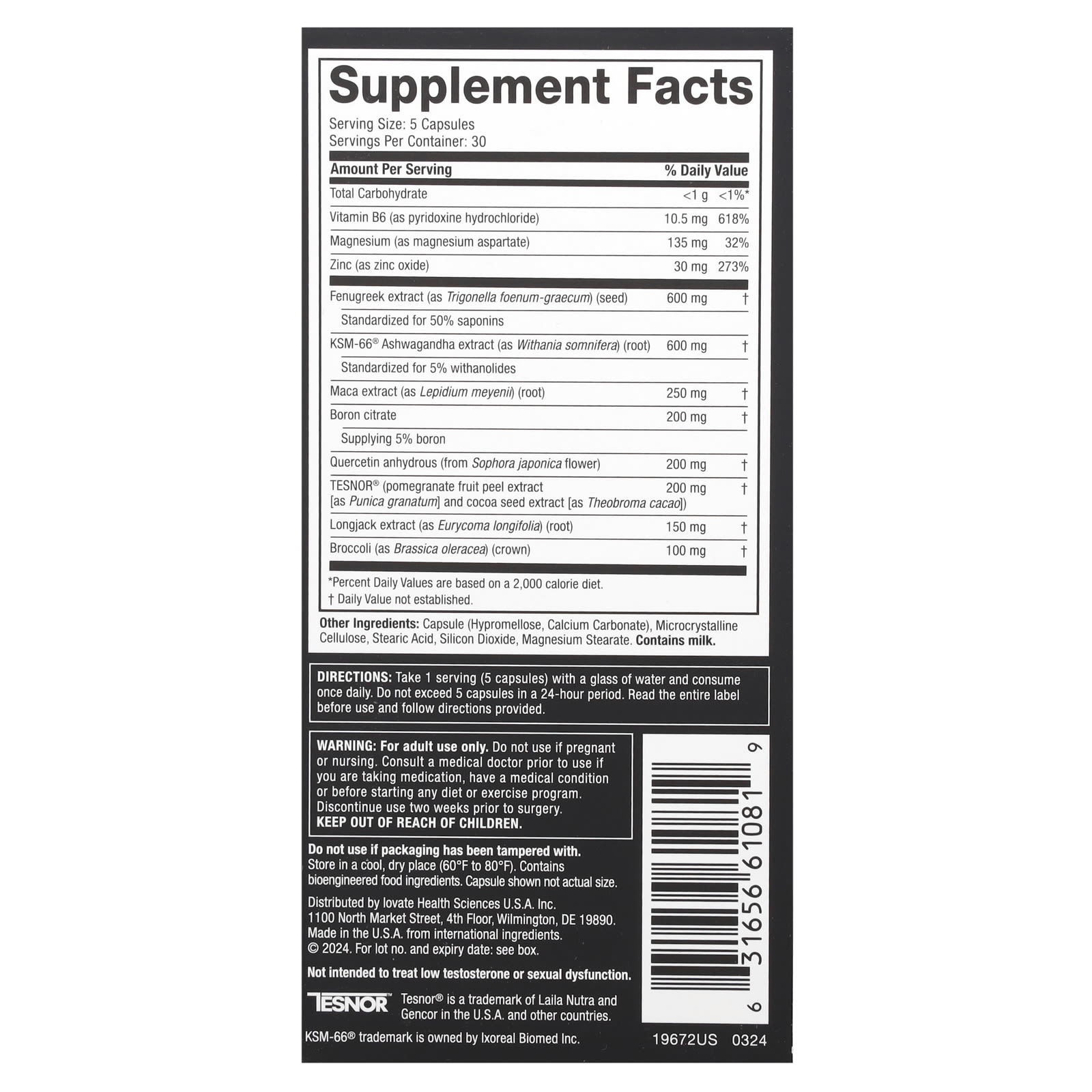 | Fenugreek extract (as Trigonella foenum-graecum) (seed) Standardized for 50% saponins | 600 mg | † |