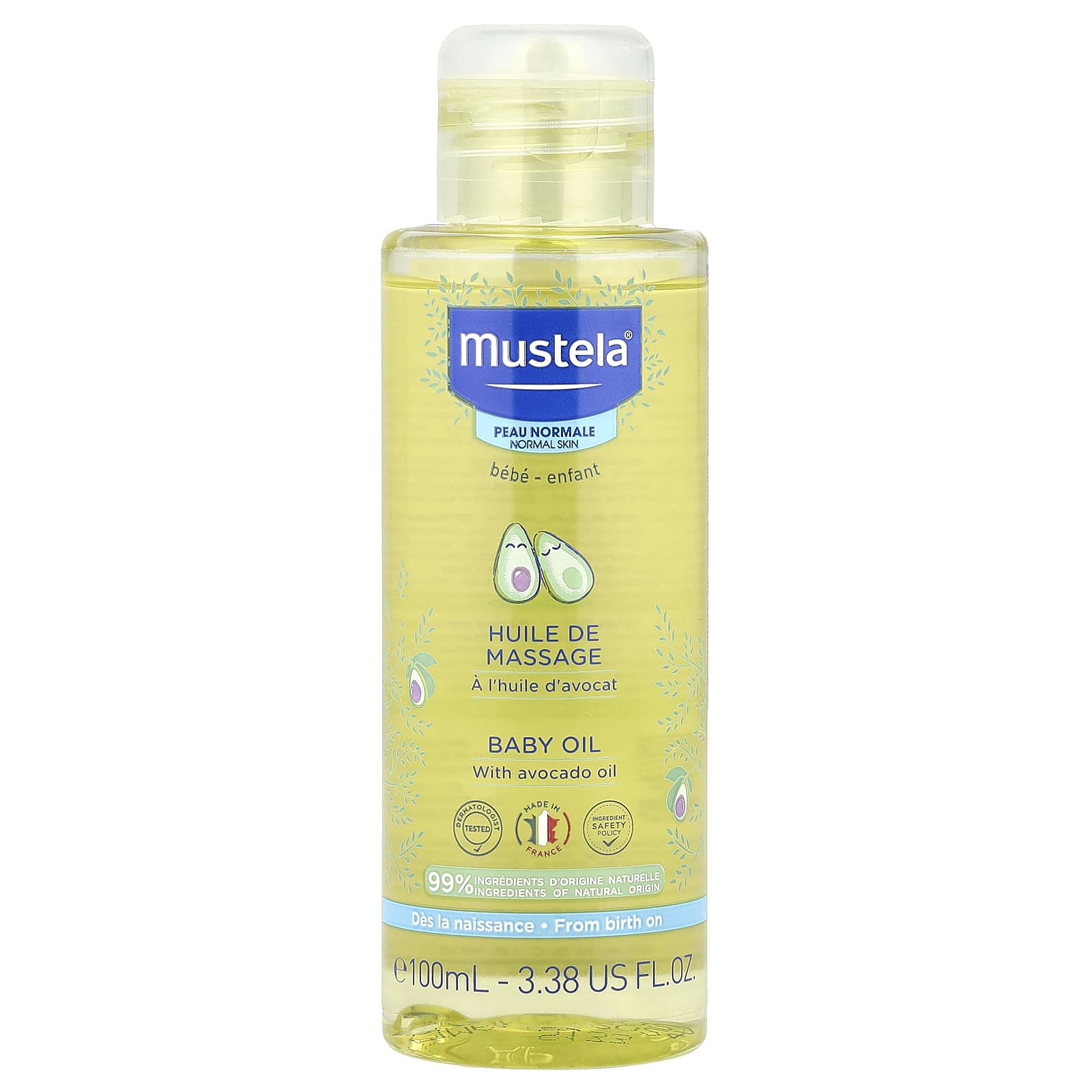 Нанесите на руки, затем помассируйте тело. Высокая переносимость кожей с рождения¹.