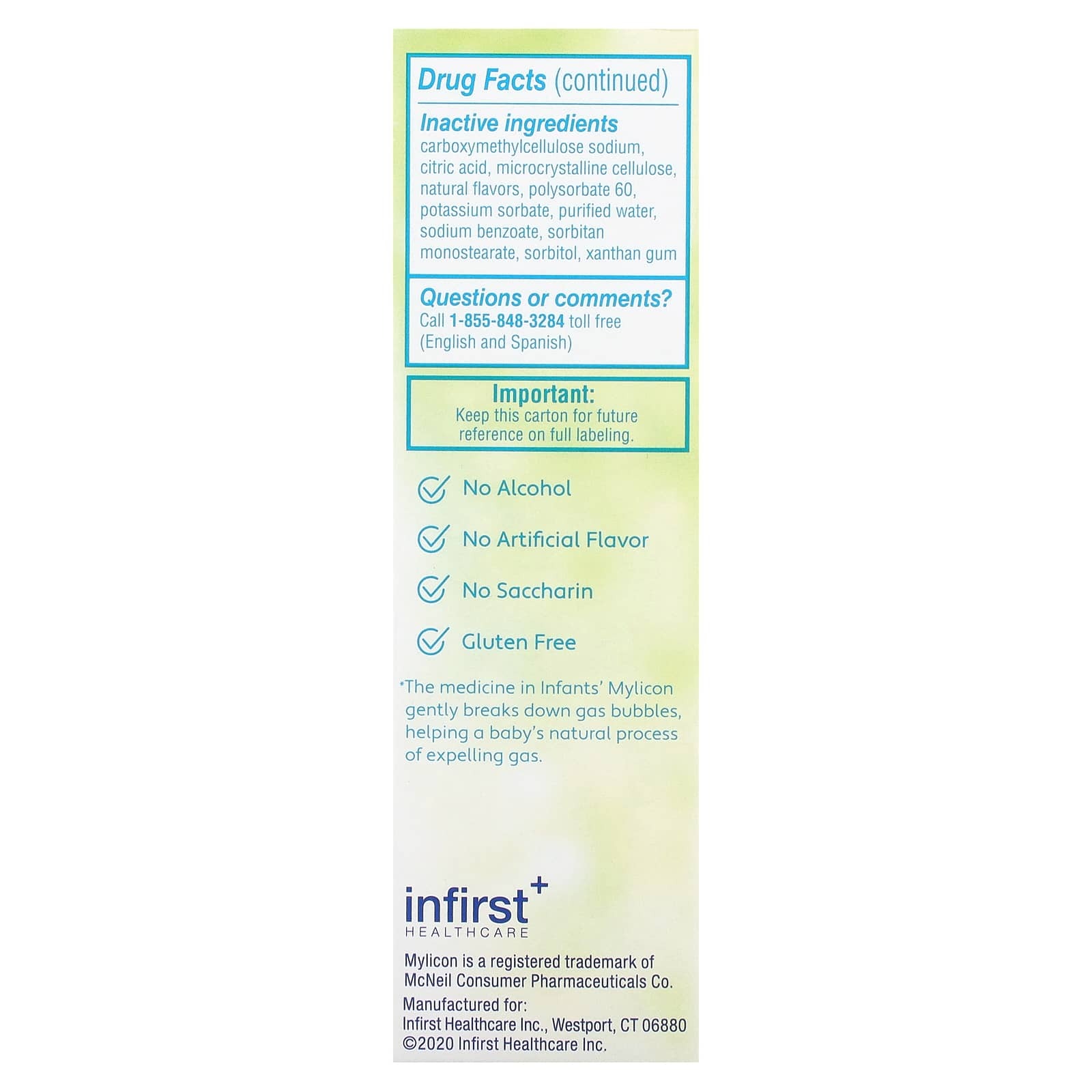 * Лекарство Mylicon для младенцев мягко разрушает пузырьки газа, помогая естественному процессу вывода газа из организма ребенка.