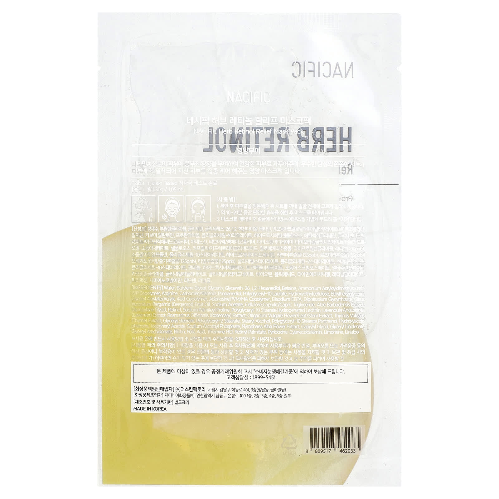 Тканевая маска Nacific Herb с ретинолом Relief Mask, содержащая омолаживающие ретинолы и высокоувлажняющие экстракты трав, предназначена для восстановления упругости кожи, разглаживания мелких морщин и ухода за уставшей кожей.