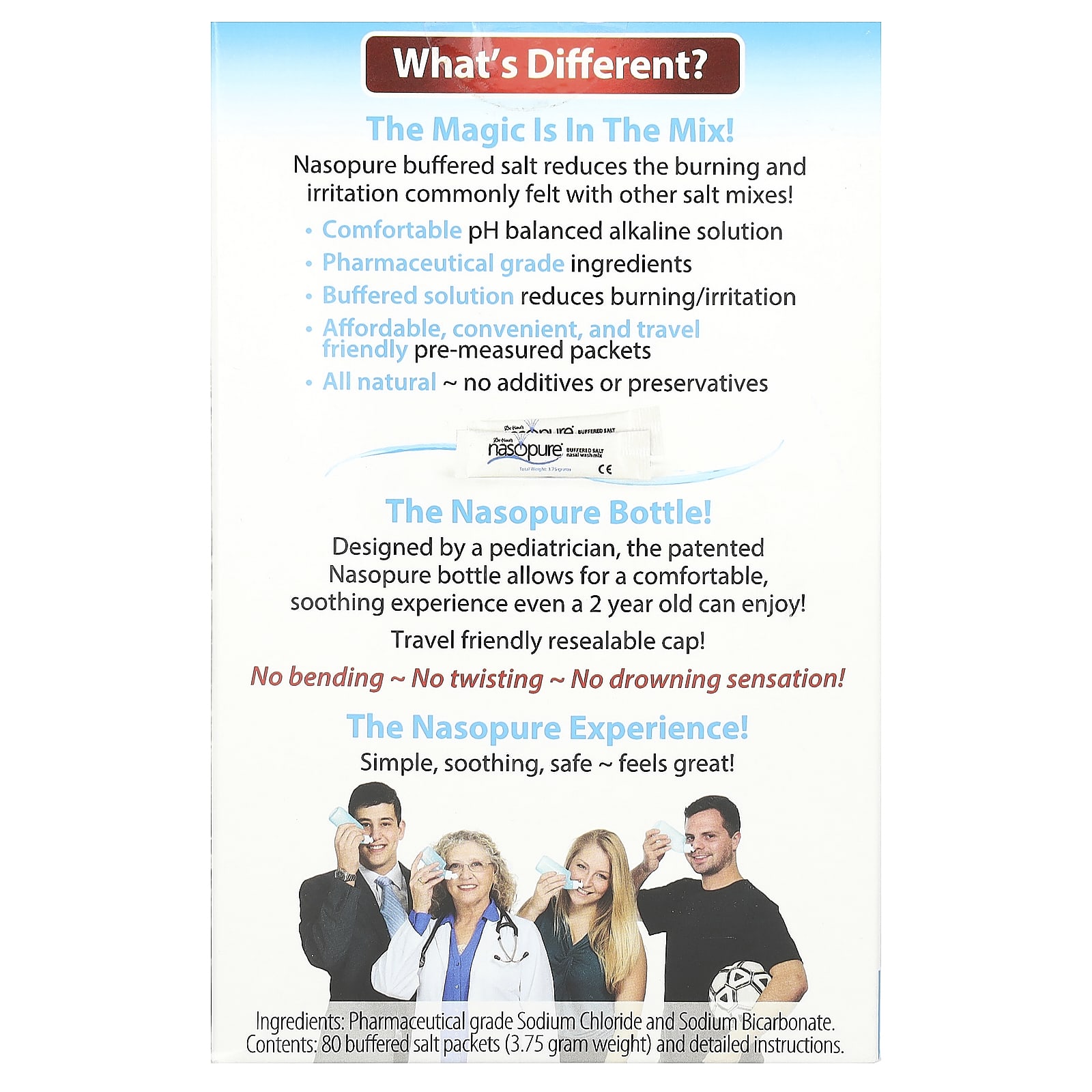 Nasopure снимает симптомы, связанные с аллергией, простудой, гриппом, синуситом и ринитом. Все начинается с запатентованного Nasopure эргономичного дизайна флакона, который позволяет идеально контролировать непрерывный поток раствора по носовым перегородкам. Такой дизайн устраняет необходимость отмерять дозу или выгинать горлышко, позволяет избежать общей жалобы на ощущение «утопления», часто возникающего при использовании других средств для промывания носа.