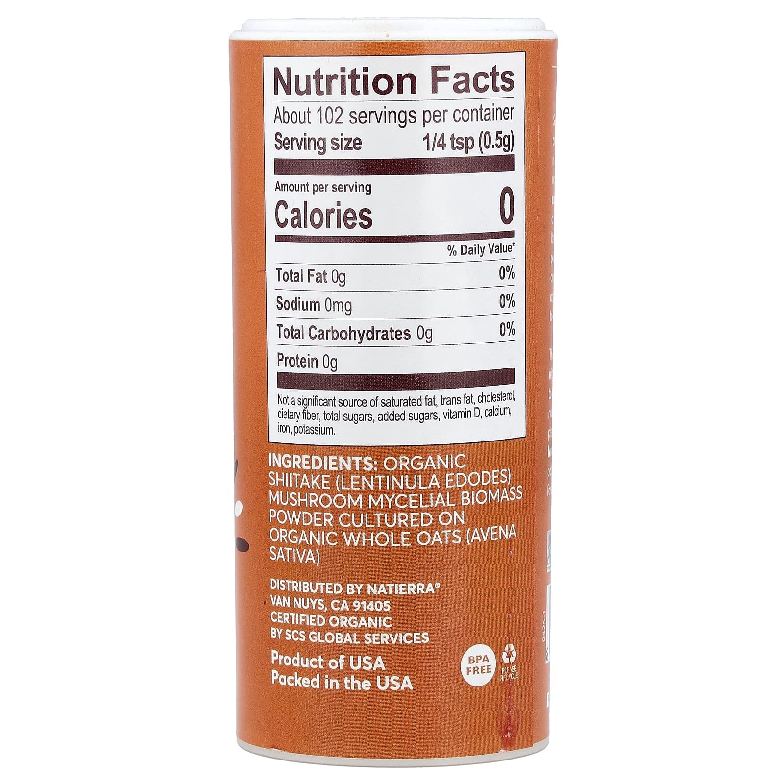 Порошок из биомассы мицелия органического гриба шиитаке (Lentinula edodes), выращенного на органическом цельном овсе (Avena sativa).