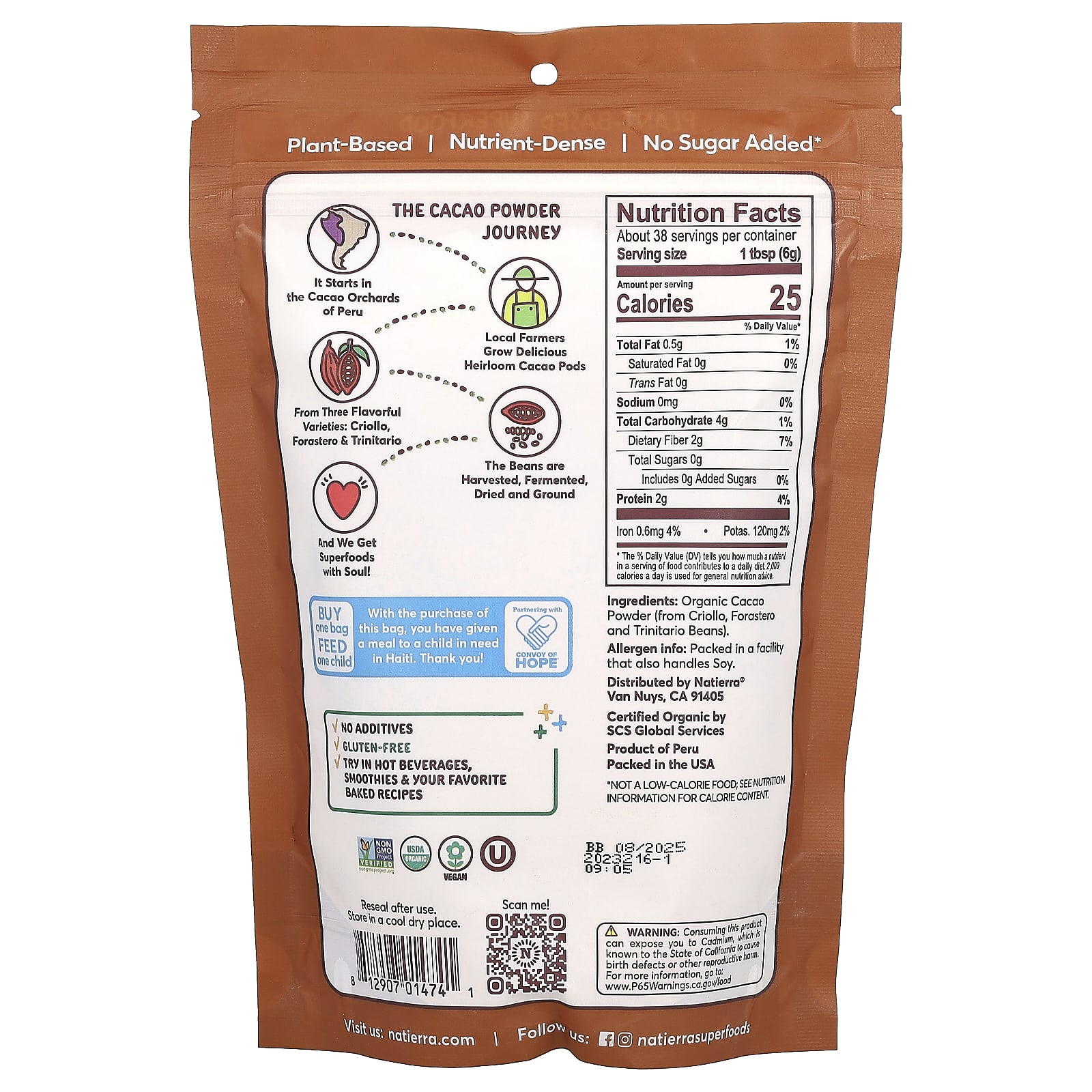 Органический какао-порошок (сортов криолло, форастеро и тринитарио).
