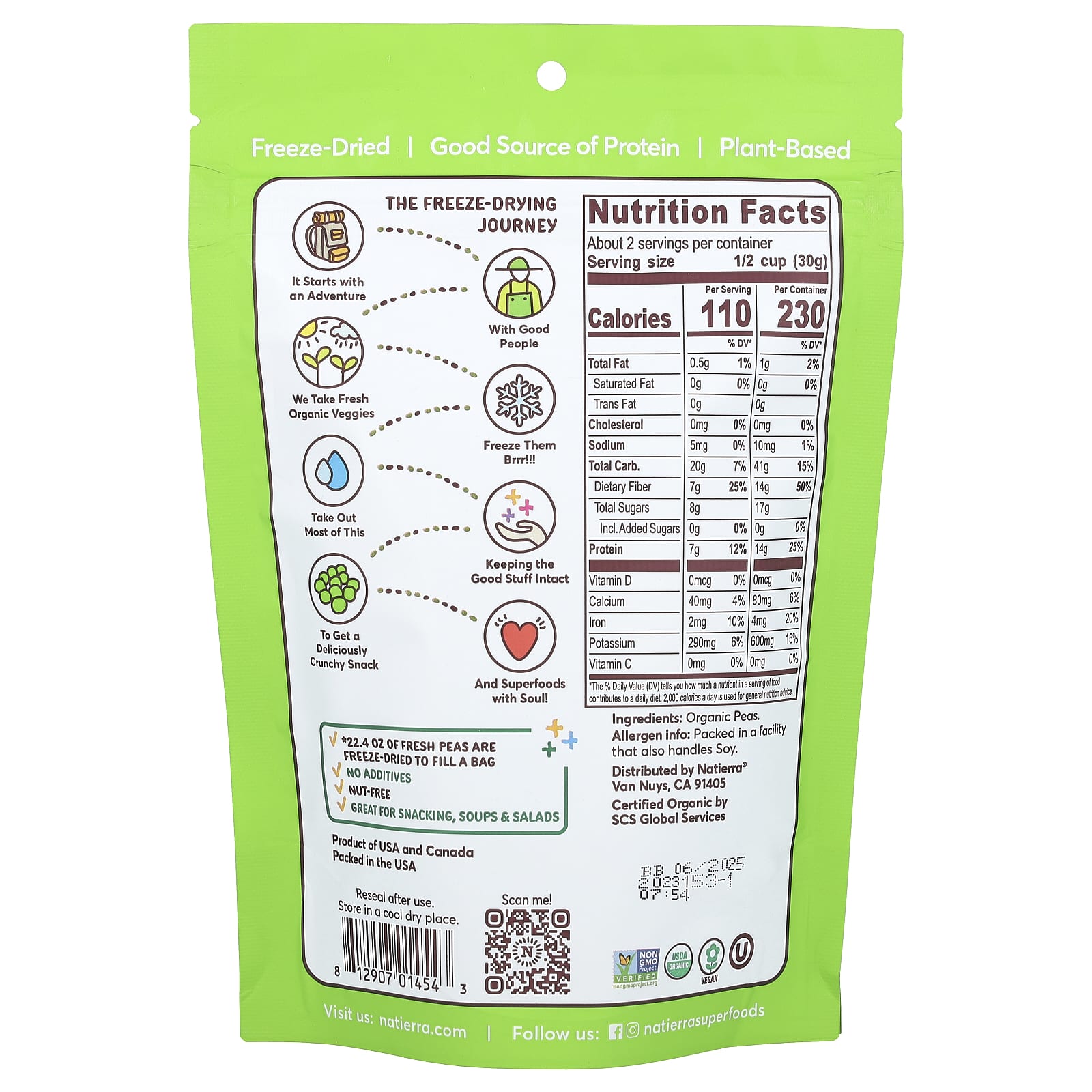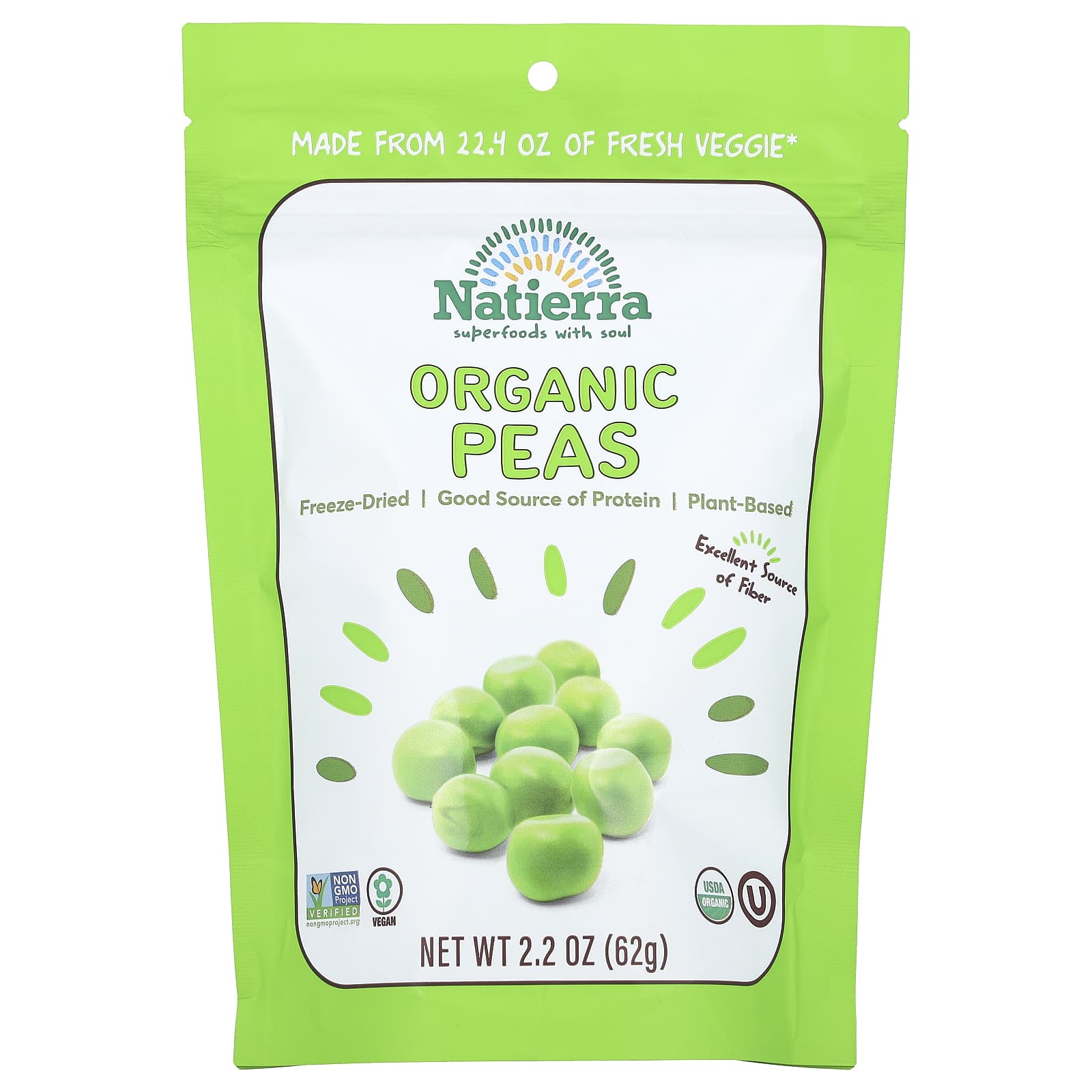 Natierra, органический сублимированный горох, 62 г (2,2 унции)