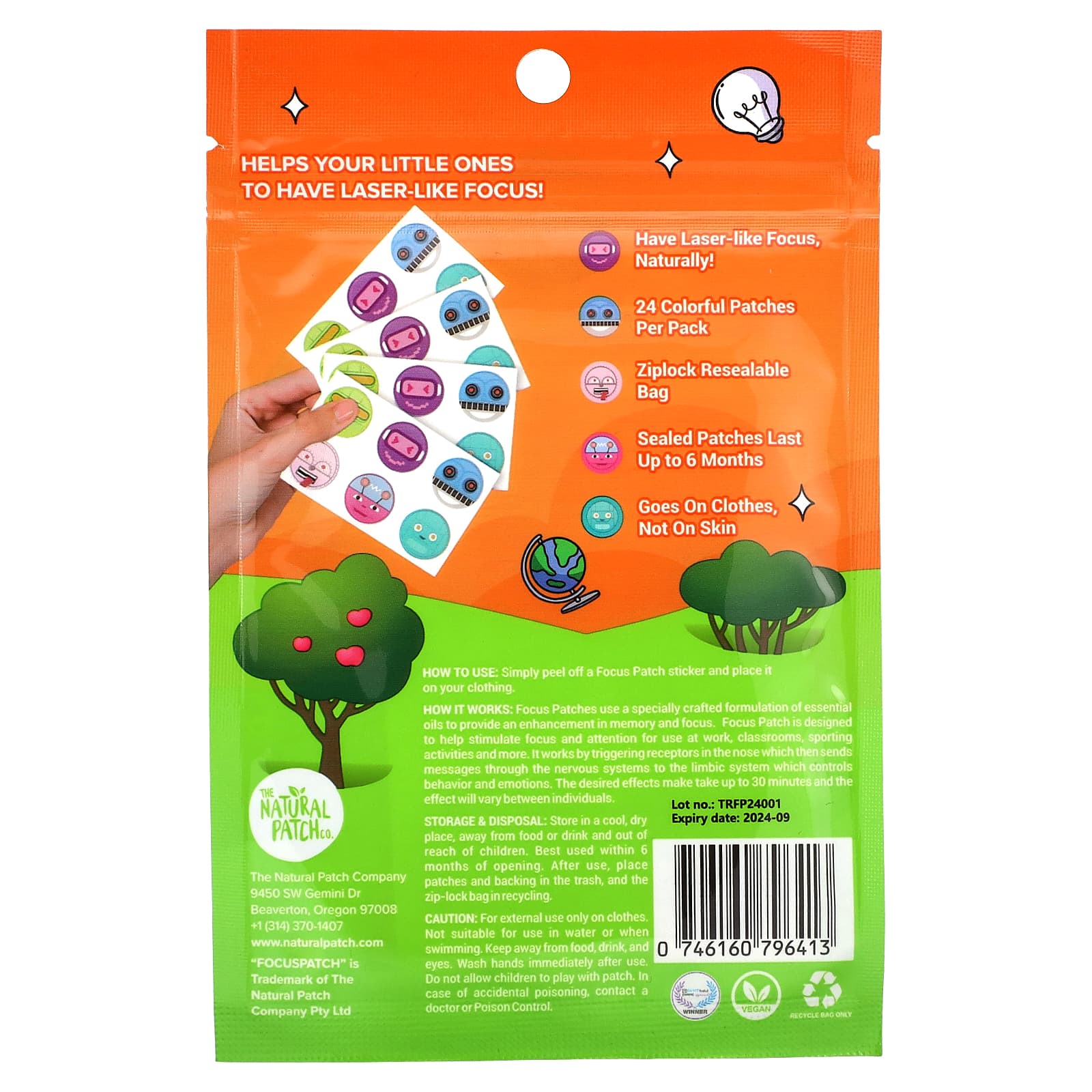 Принцип действия В патчах для концентрации внимания используется специально разработанная формула эфирных масел, которые улучшают память и концентрацию внимания. Патч Focus Patch помогает стимулировать концентрацию и внимание на работе, в классах, во время занятий спортом и многого другого. Он воздействует на рецепторы в носу, которые затем отправляют сообщения через нервную систему в лимбическую систему, которая контролирует поведение и эмоции. Для достижения желаемого эффекта требуется до 30 минут. Этот эффект может отличаться в зависимости от человека.