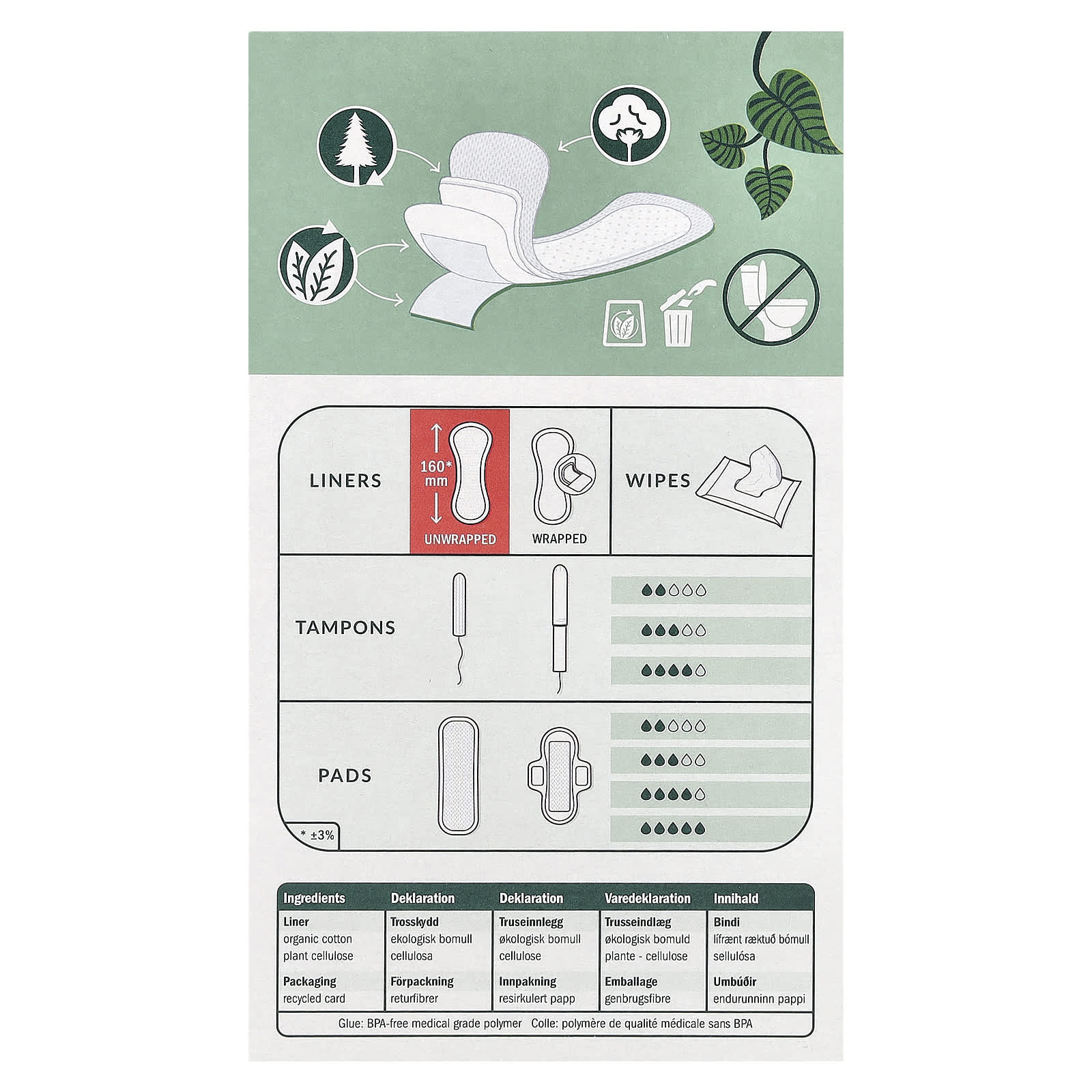 Подкладка: 160* мм без упаковки, органический хлопок, растительная целлюлоза.
