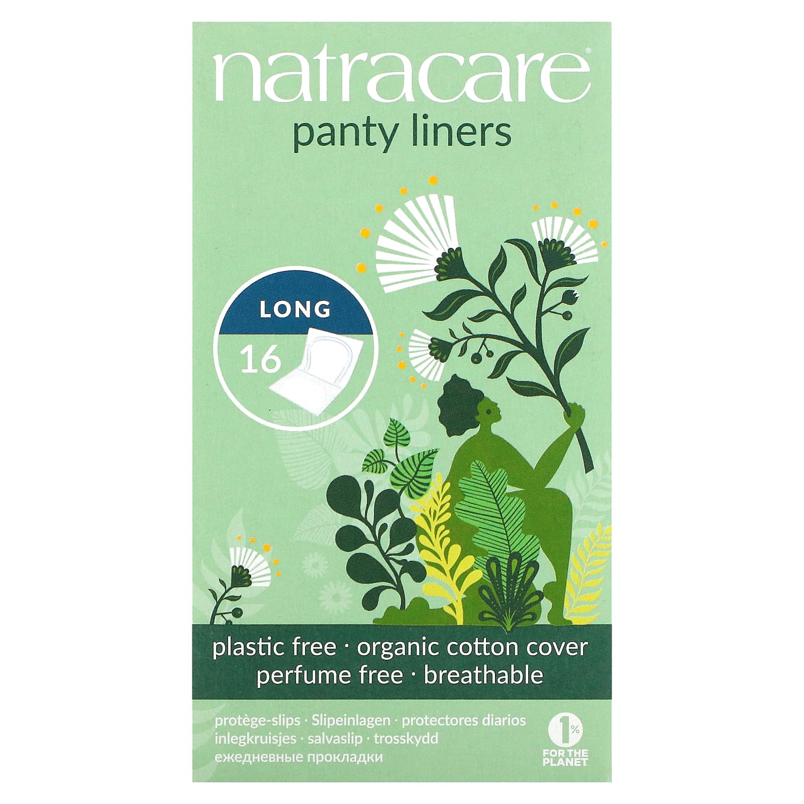 Natracare, ежедневные прокладки, с поверхностью из органического хлопка, длинные, 16 шт.