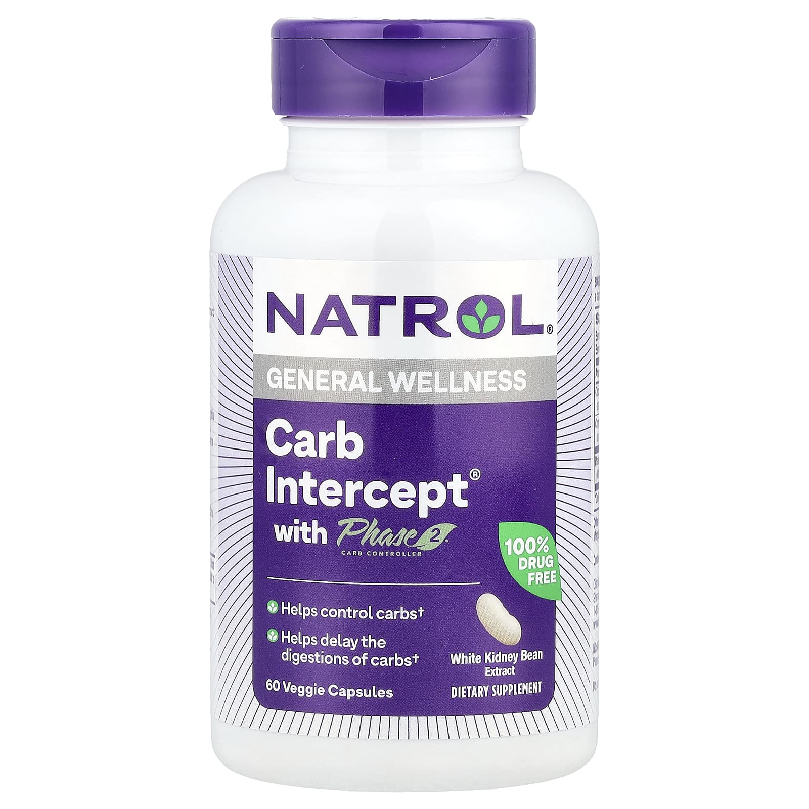 Natrol® Carb Intercept®: Содержит Phase 2®, клинически протестированный, не стимулирующий, полностью натуральный экстракт белой фасоли, который помогает контролировать углеводы за счет снижения ферментативного переваривания пищевых крахмалов и задержки переваривания углеводов.