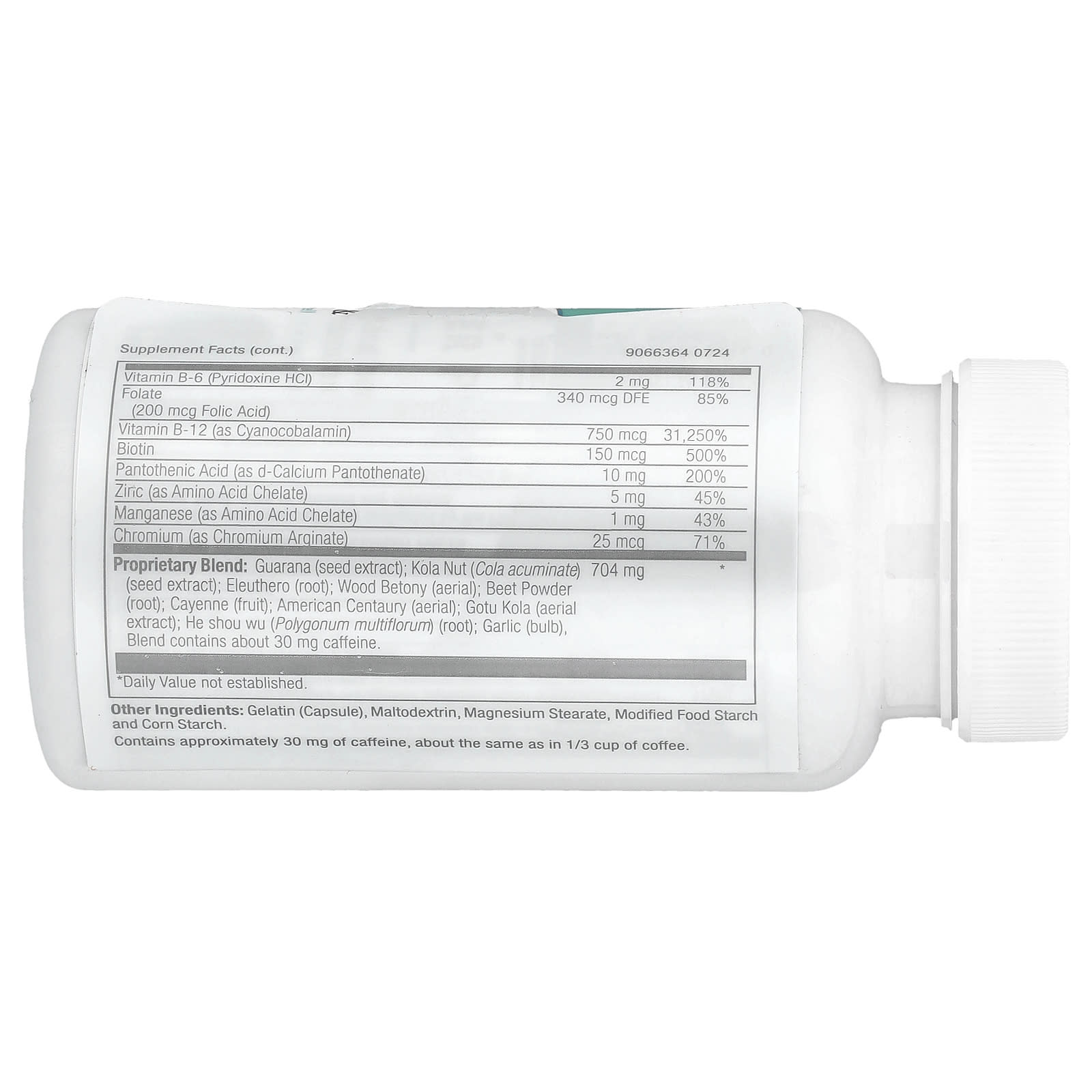 | Запатентованная смесь: Гуарана (экстракт семян). орех кола (Cola acuminata) (экстракт семян); элеутерококк (корень); буквица древесная (надземные части); порошок из свеклы (корнеплода); кайенский перец (плоды); американский васильк (надземные части); готу кола (экстракт надземных частей); горец многоцветковый (Polygonum multiflorum) (корень); Смесь чеснока (луковицы) содержит около 30 мг кофеина. | 704 мг | * |