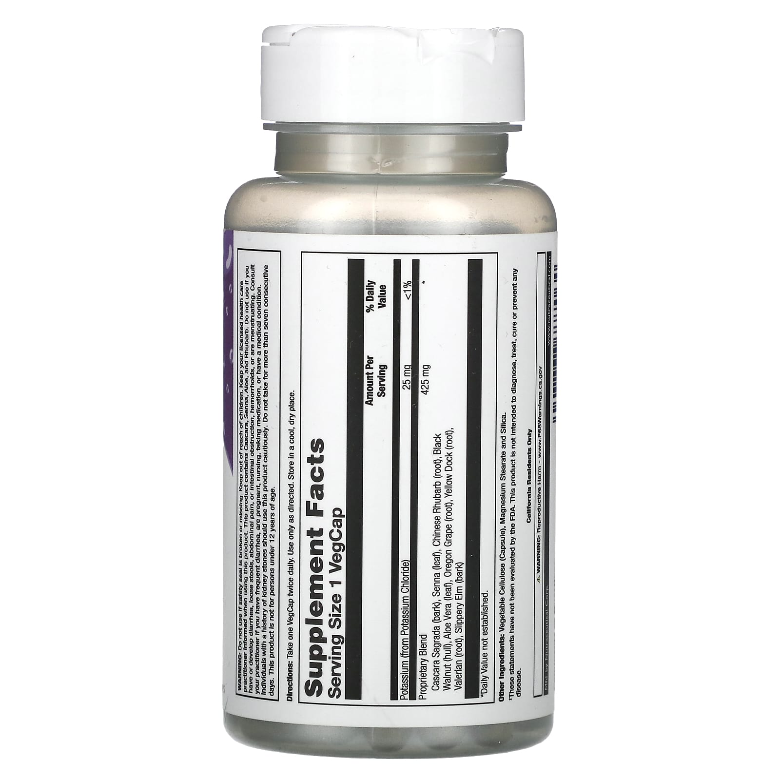 Не следует использовать продукт, если защитная пленка повреждена или отсутствует. Хранить в недоступном для детей месте. Перед началом применения следует проконсультироваться с врачом. Этот продукт содержит каскару, сенну, алоэ и ревень. Не используйте при наличии или появлении диареи, жидкого стула, боли в животе, кишечной непроходимости, геморроя или во время менструации. Проконсультируйтесь с лечащим врачом при частой диарее, во время беременности, кормления грудью, приема препаратов или при наличии каких-либо заболеваний. Лицам, у которых в анамнезе были камни в почках, следует использовать этот продукт с осторожностью. Не используйте более 7 дней подряд. Этот продукт не предназначен для лиц младше 12 лет.