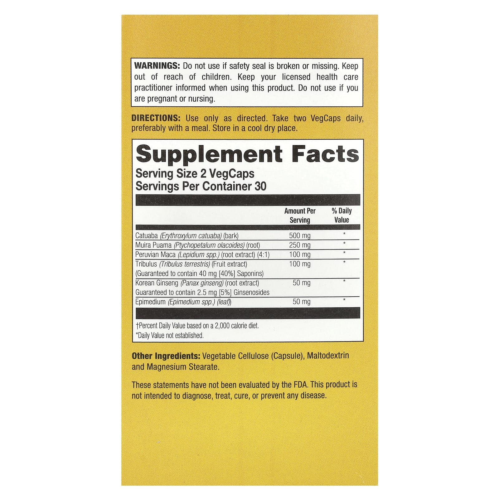 | Катуаба (Erythroxylum catuaba) (кора) | 500 мг | * |