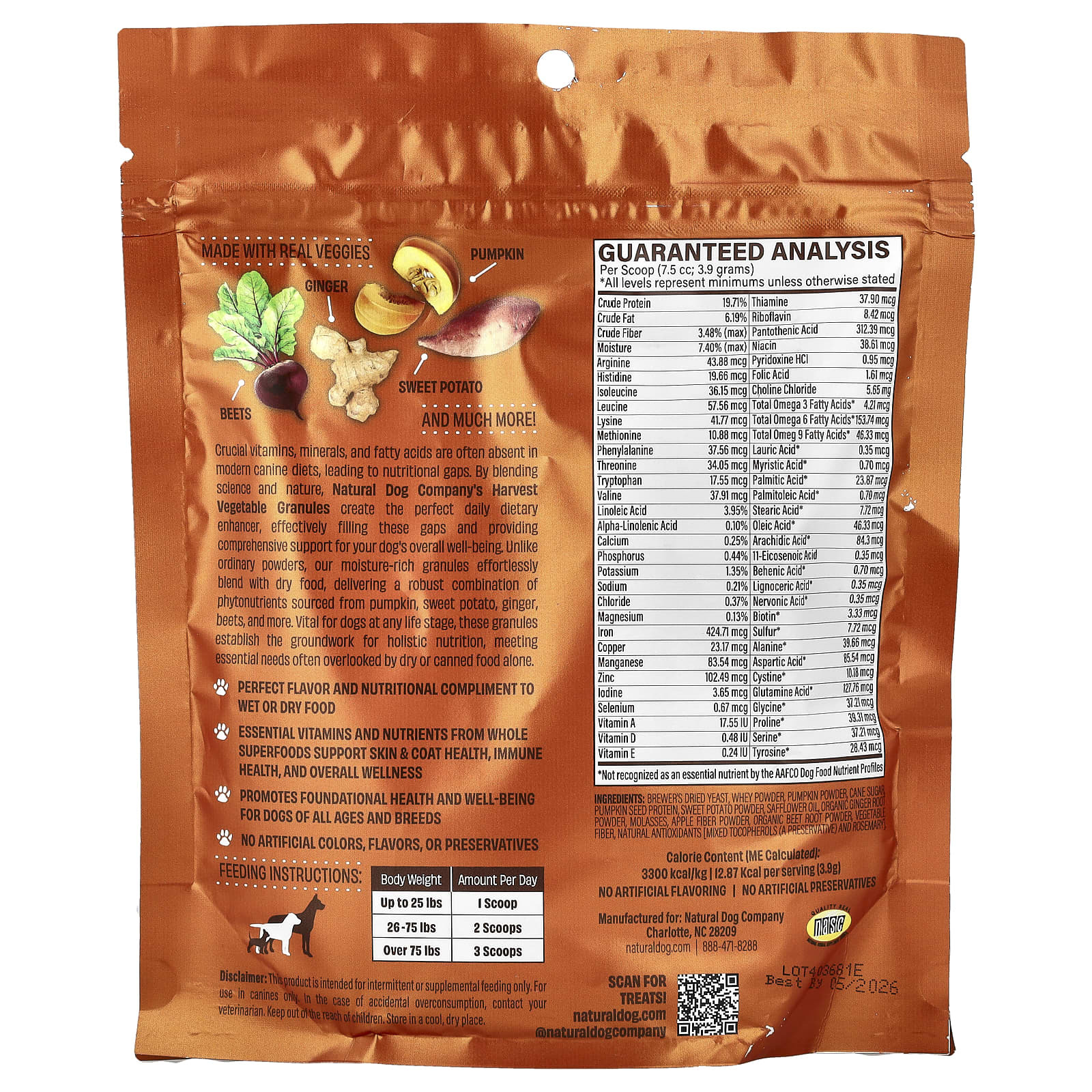 Важнейшие витамины, минералы и жирные кислоты часто отсутствуют в рационе современных собак, что приводит к перебоям в питании. Объединяя науку и природу, растительные гранулы Harvest от Natural Dog создают идеальный усилитель ежедневного рациона, эффективно заполняя эти пробелы и обеспечивая всестороннюю поддержку общего самочувствия вашей собаки. В отличие от обычных порошков, наши богатые влагой гранулы легко смешиваются с сухим кормом, обеспечивая надежное сочетание фитонутриентов, полученных из тыквы, батата, имбиря, свеклы и других продуктов. Эти гранулы имеют жизненно важное значение для собак на любом этапе жизни. Они закладывают основу для комплексного питания, удовлетворяя основные потребности, часто игнорируемые только сухими или консервированными кормами.