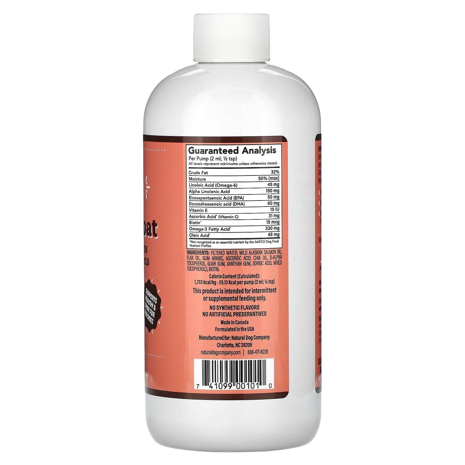 Очищенная вода, жир дикого аляскинского лосося льняного масла, аравийская камедь, аскорбиновая кислота, масло чиа, d-альфа токоферол, гуаровая камедь, ксантановая камедь, сорбиновая кислота, смешанные токоферолы, биотин.