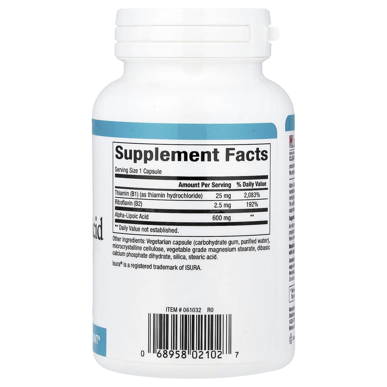 Альфа-липоевая кислота (АЛК) обеспечивает антиоксидантную поддержку широкого спектра действия и помогает поддерживать здоровый метаболизм глюкозы. Он также продлевает жизнь другим антиоксидантам, заряжая их энергией, чтобы они могли продолжать нейтрализовать свободные радикалы в организме. Добавление тиамина (B1) и рибофлавина (B2) дополняет роль АЛК в поддержании здорового обмена веществ.