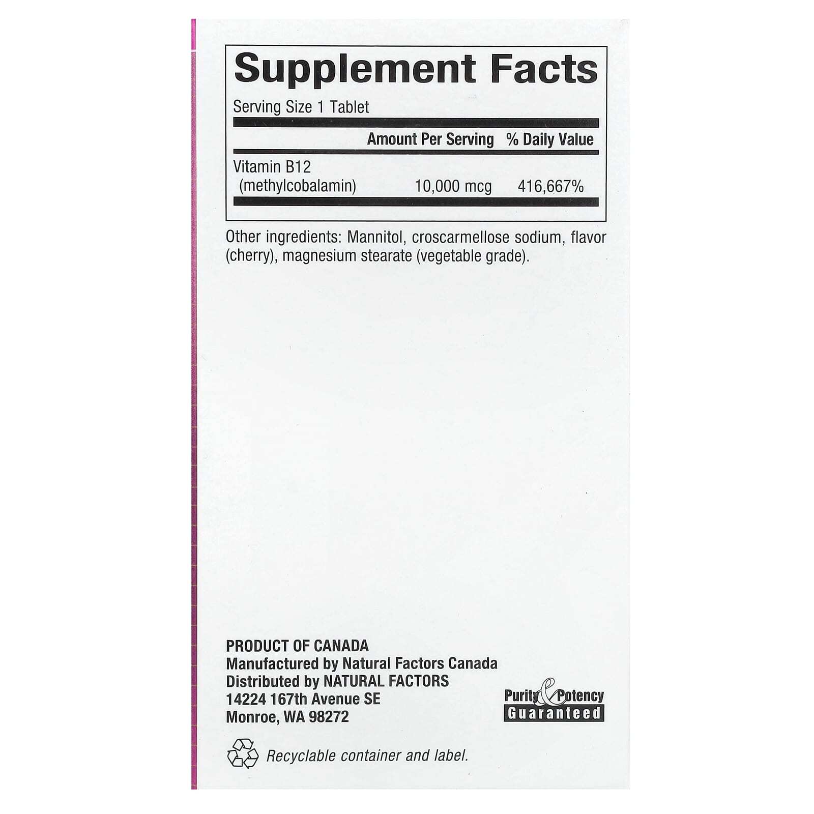 Изготовлено компанией Natural Factors с гарантией безопасности и эффективности в соответствии со стандартами надлежащей производственной практики (GMP), разработанными Управлением по санитарному надзору за качеством пищевых продуктов и медикаментов (FDA) США и Министерством здравоохранения Канады.